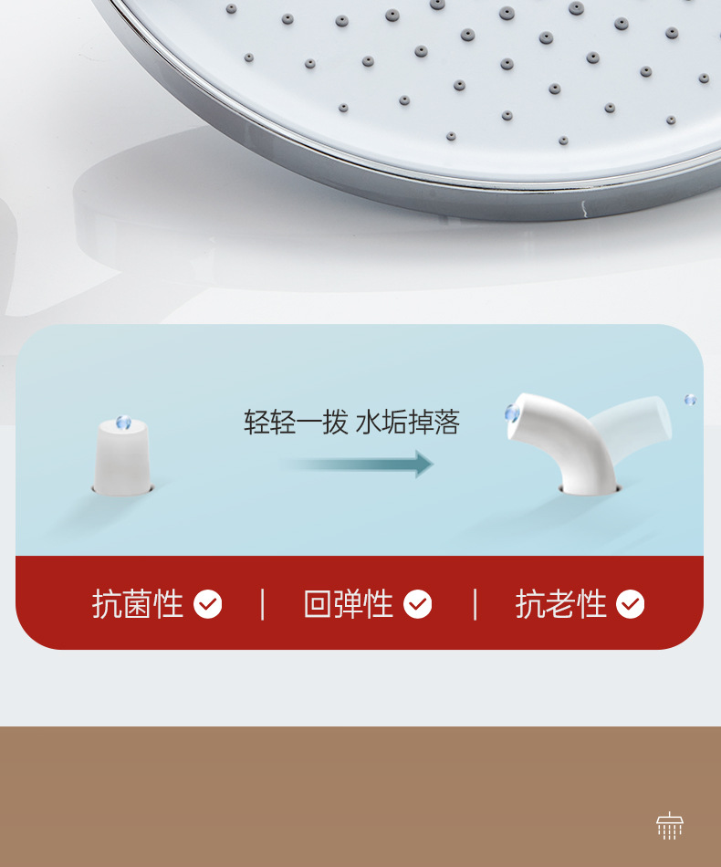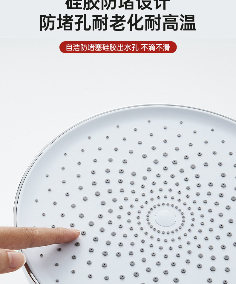 - 【银白圆形套装】巨幕顶喷+手喷+1.5米不锈钢软管+吸盘支架