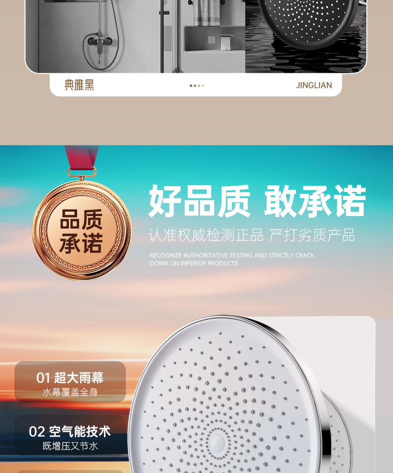 - 【银黑圆形套装】巨幕顶喷+手喷+1.5米不锈钢软管+吸盘支架