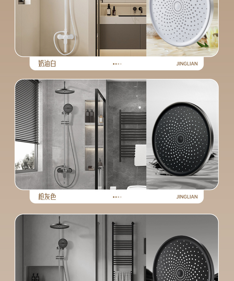 - 【枪灰圆形套装】巨幕顶喷+手喷+1.5米不锈钢软管+吸盘支架