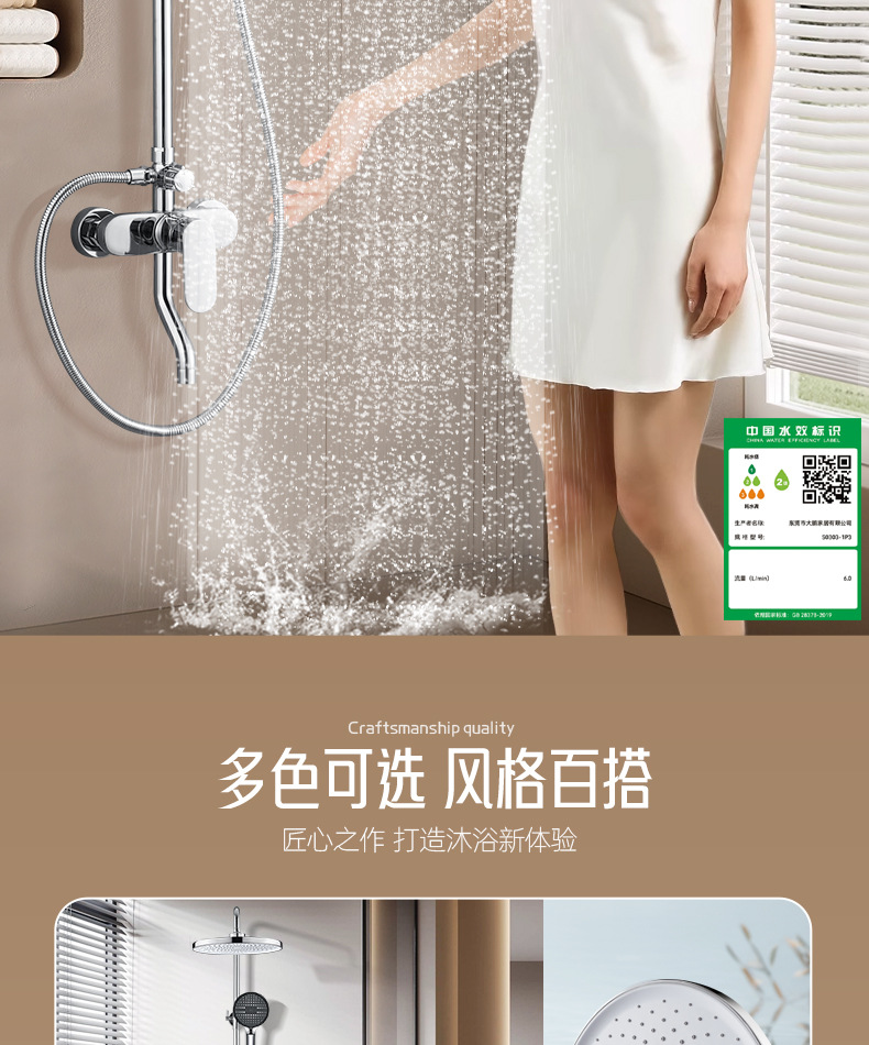 - 【白色圆形套装】巨幕顶喷+手喷+1.5米不锈钢软管+吸盘支架
