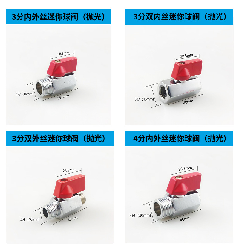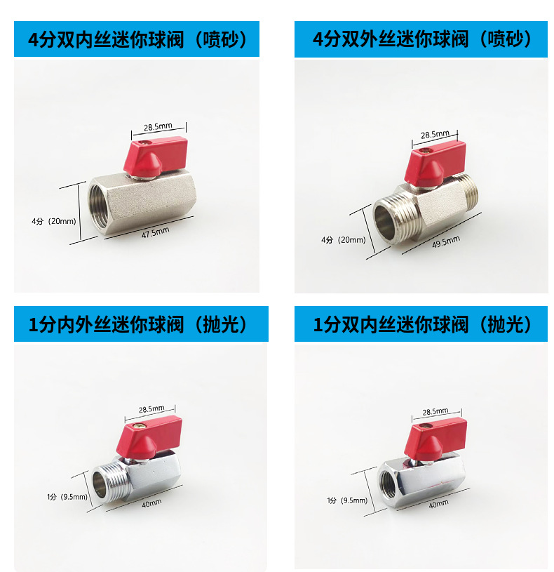黄铜镀镍迷你小球阀2分双内丝内外丝气动微型铜球阀喷砂抛光阀门