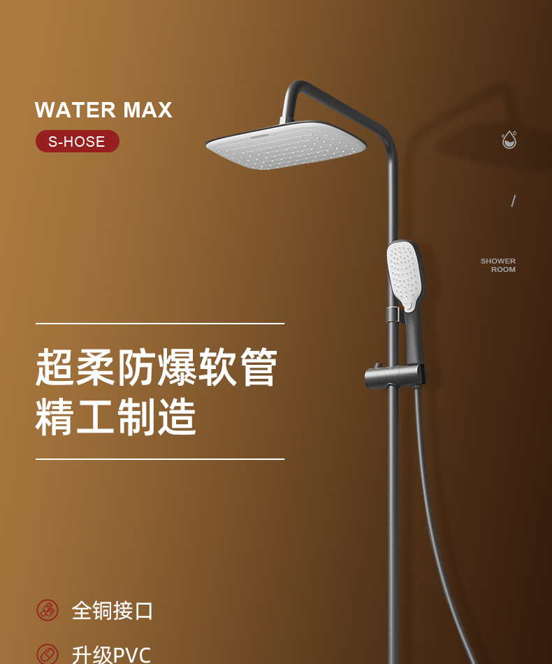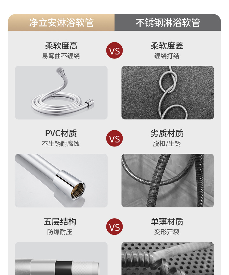 - 【PVC套装6】2米加厚防爆软管+5档增压花洒