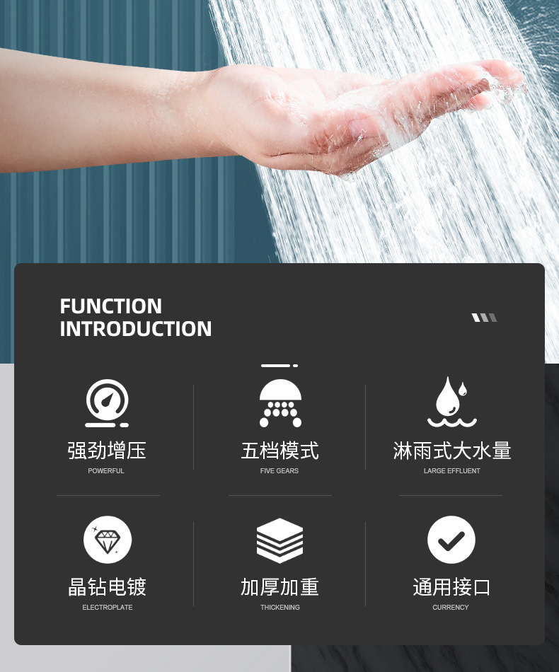 - 【电镀银套装2】增压花洒+1.5米防爆软管