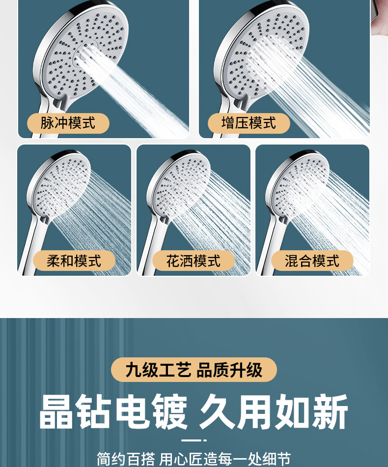 - 【电镀银套装5】增压花洒+2.0米防爆软管+免打孔支架