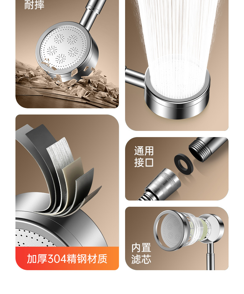 304不锈钢花洒喷头手持式增压浴霸热水器淋浴加压莲蓬头淋浴器