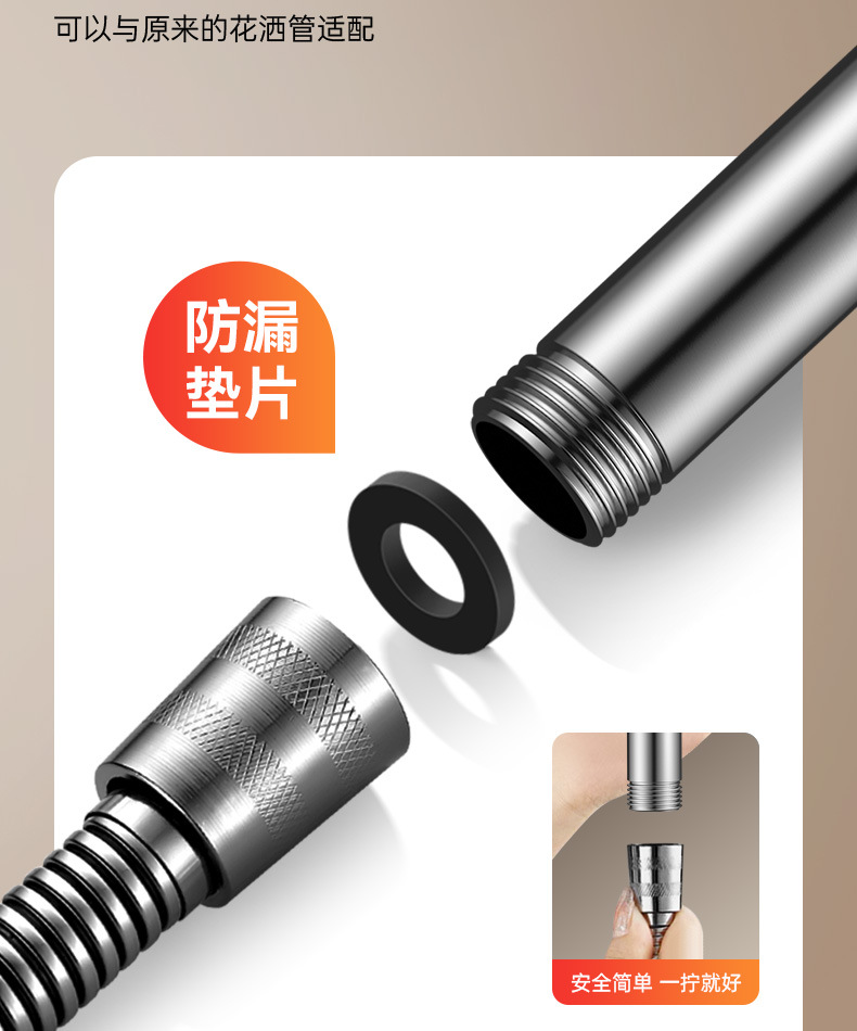 - 【古典灰套装4】增压花洒+2.0米防爆软管