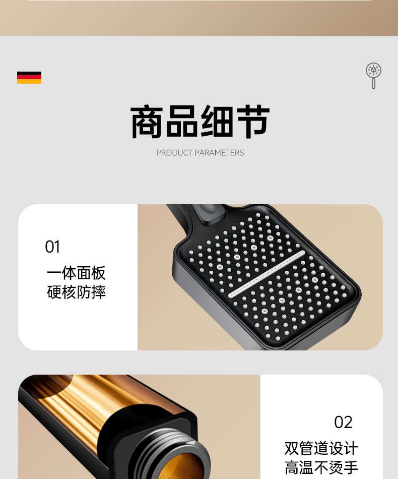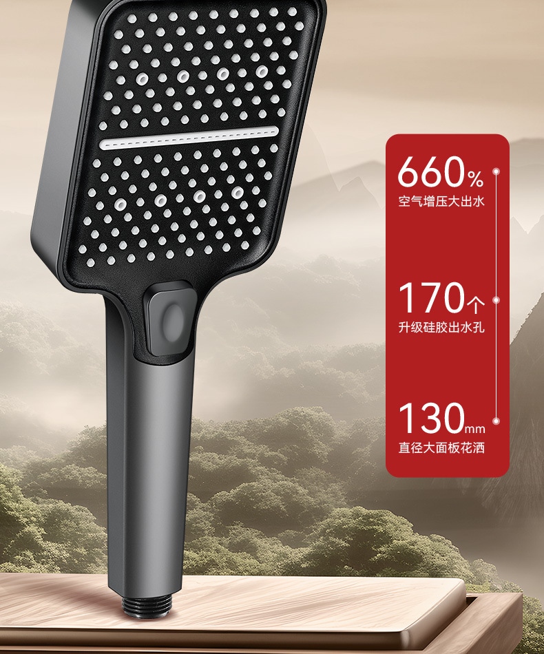 - 【钛金灰套装3】增压花洒+免打孔支架