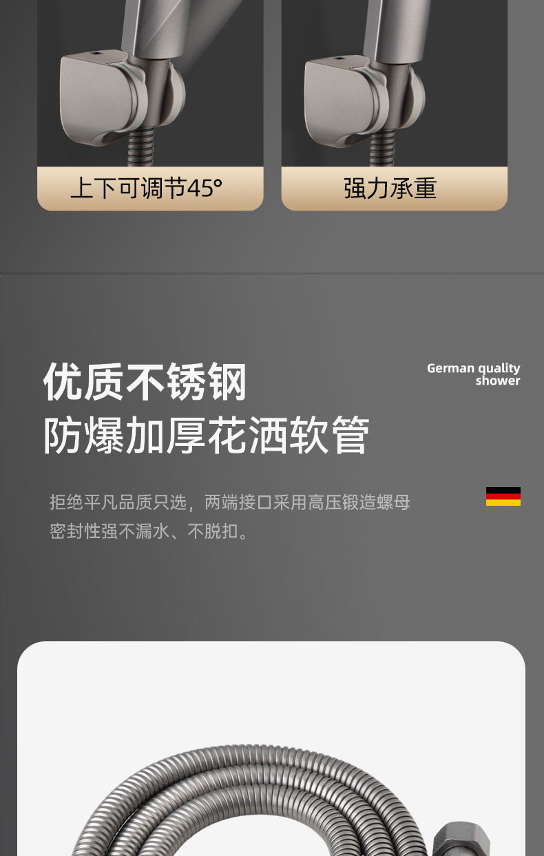 - 升级大水流【灰色套装5】强劲增压花洒+2米防爆软管+支架