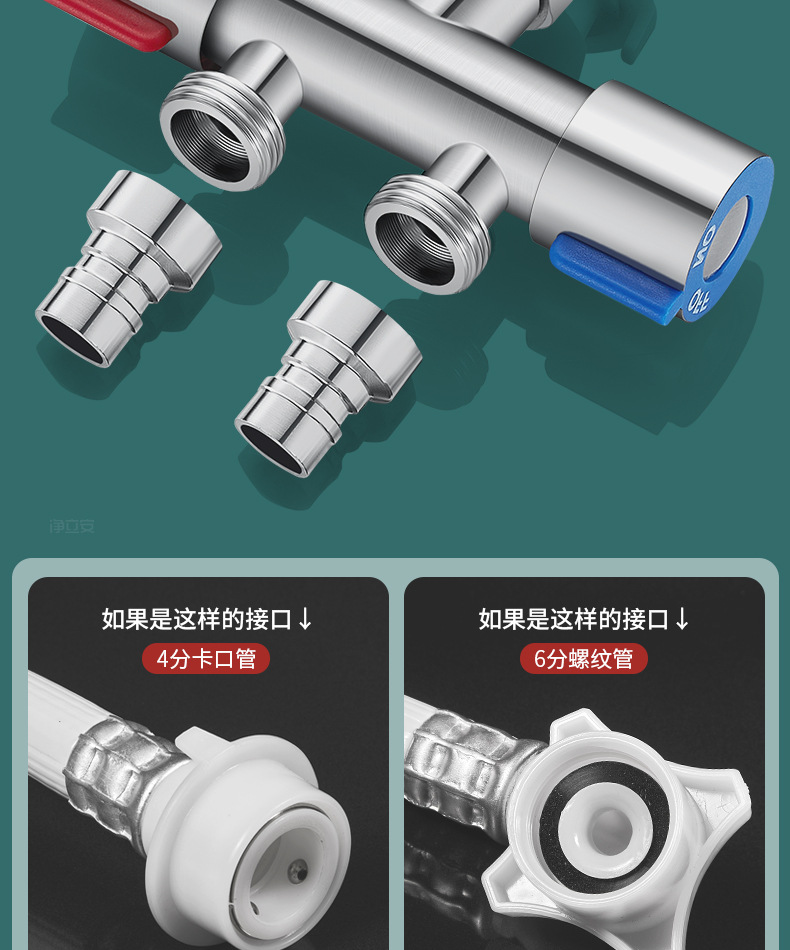 升级款-加厚304止水一分二(4分止水阀+6分洗衣机)