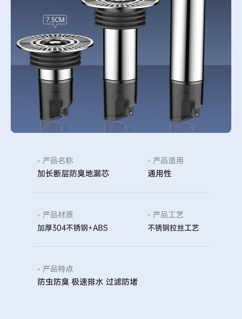 地漏防臭器卫生间通用不锈钢断层加长地漏芯防虫下水道防返臭神器