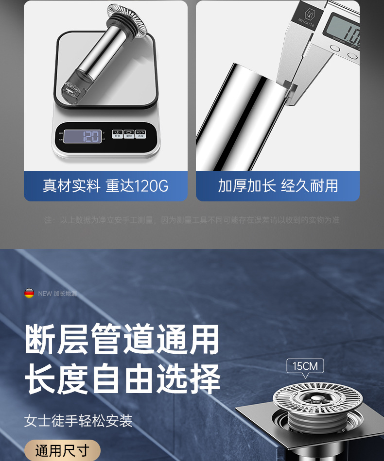 15cm断层加长芯●加大滤网【特厚304●防臭防虫】