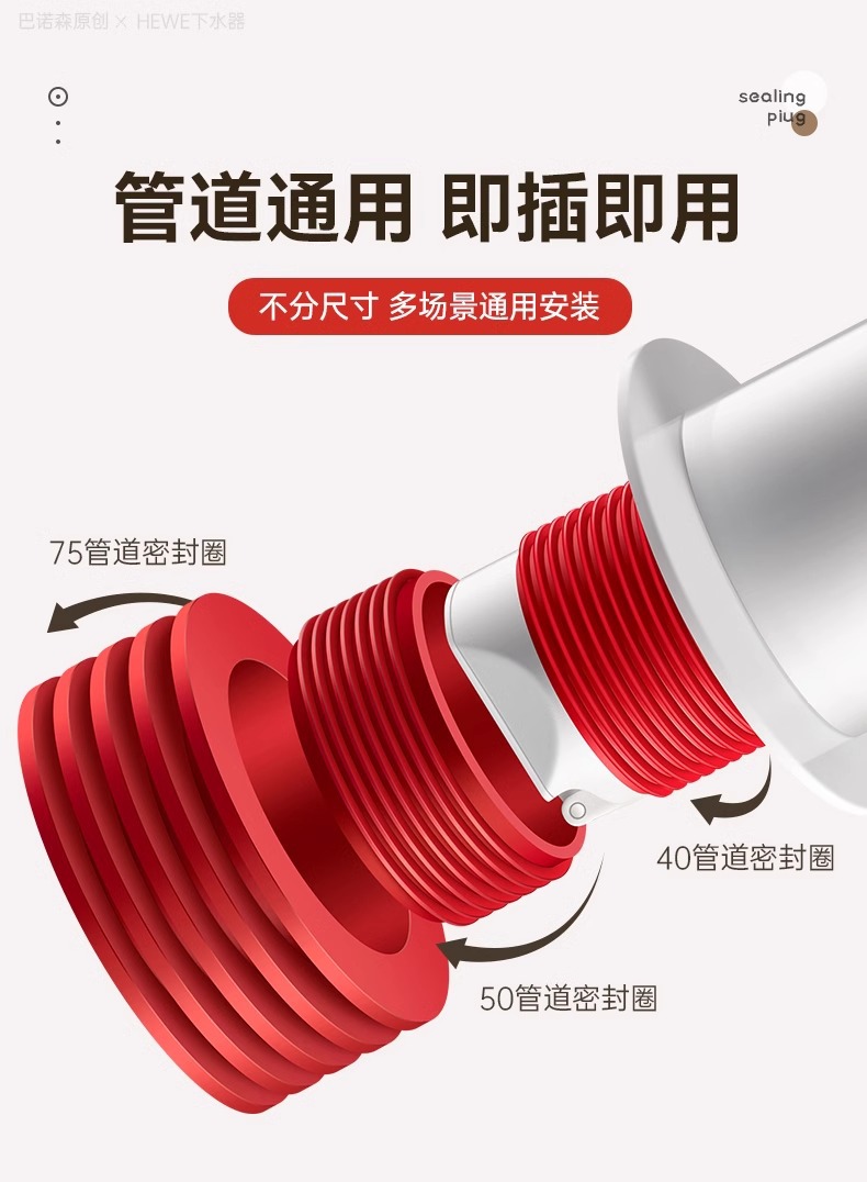 - 【50/75管通用】接洗手盆+小厨宝#送安装配件#密封防臭