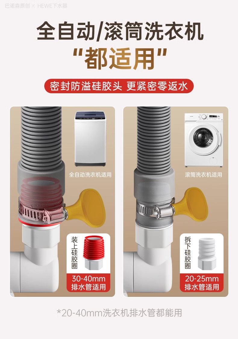 - 【50/75管通用】接洗手盆+洗衣机#送安装配件#密封防臭