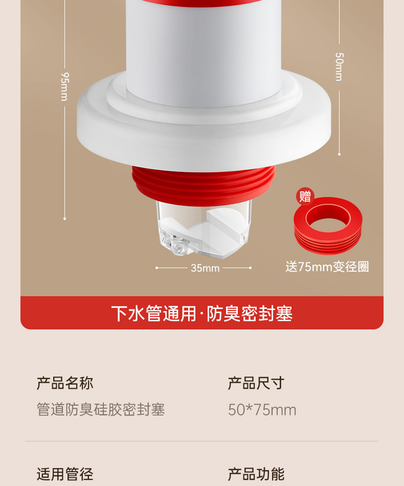 厨房下水管密封塞洗菜盆水槽5075排水管道防返臭神器防反水止逆阀
