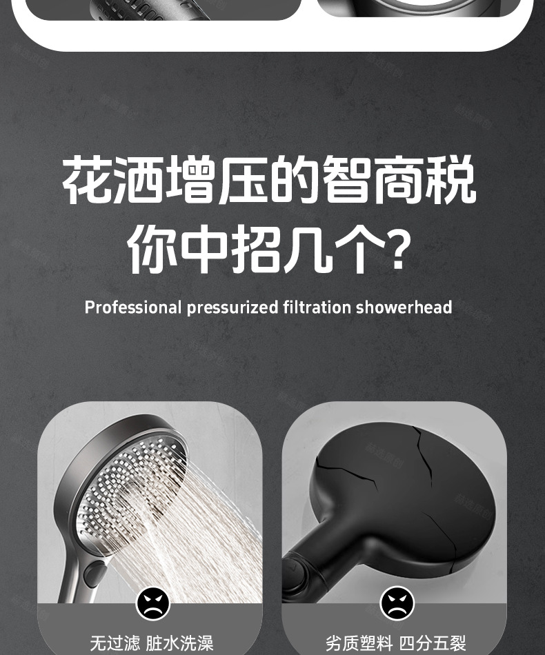 - 增压不刺痛【轻奢灰】四档调节-过滤净水(送5滤芯)