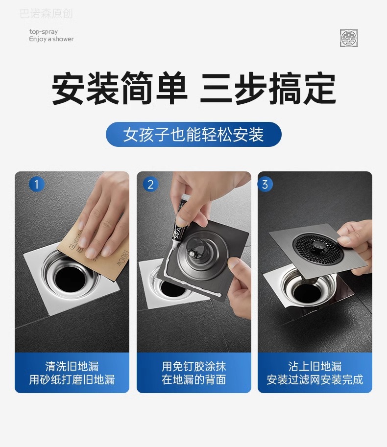 - 304不锈钢【枪灰-地漏翻新器】防臭防虫(通用安装)