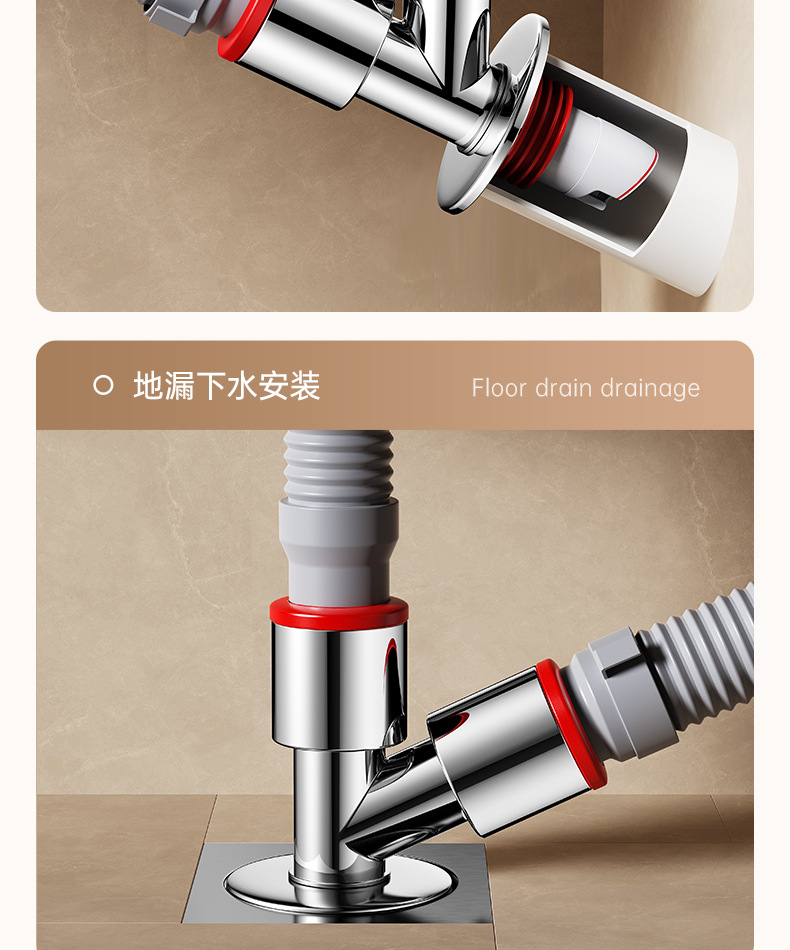 - 新升级【接洗衣机+洗衣机+烘干机】四通(管道/地漏通用)