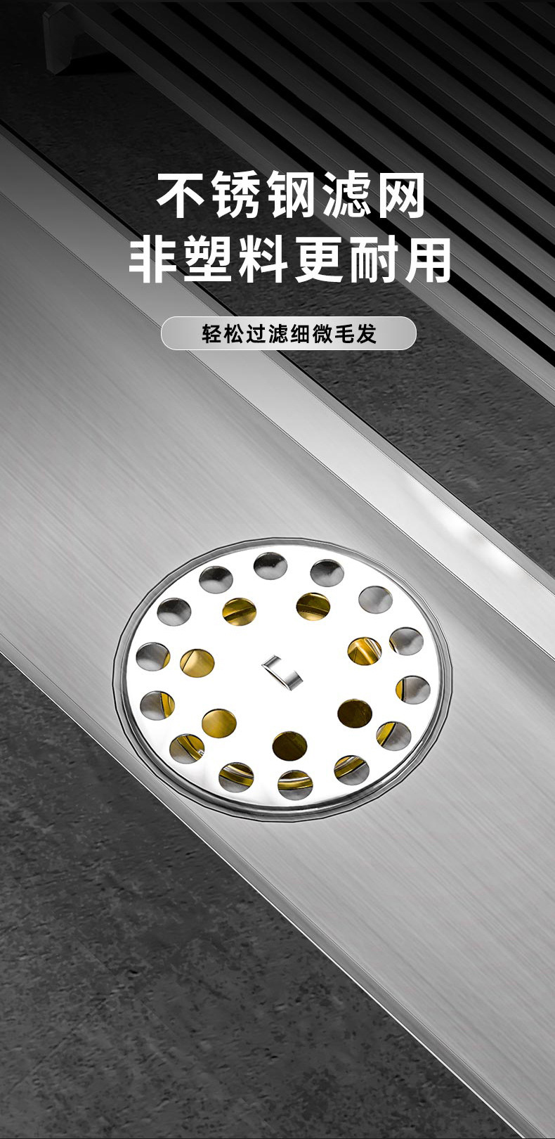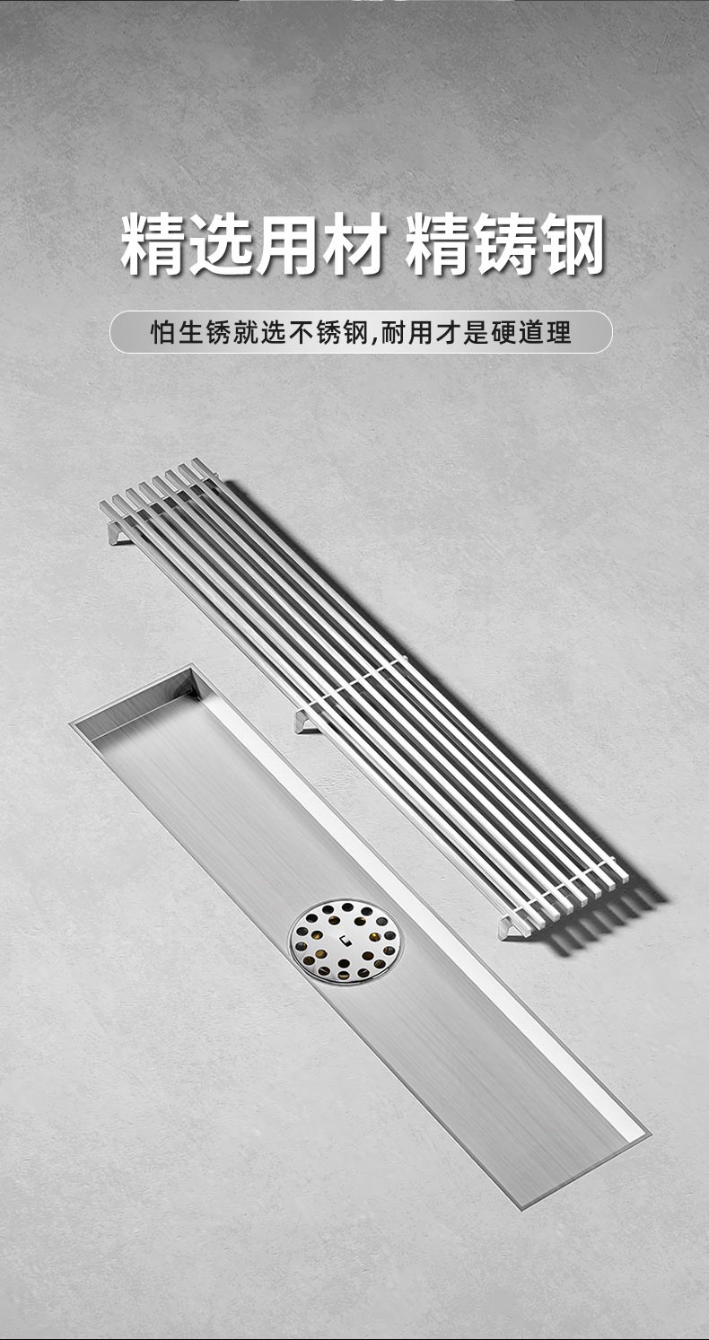长条地漏304不锈钢拉丝银卫生间淋浴全铜芯防臭长方形大排量通用