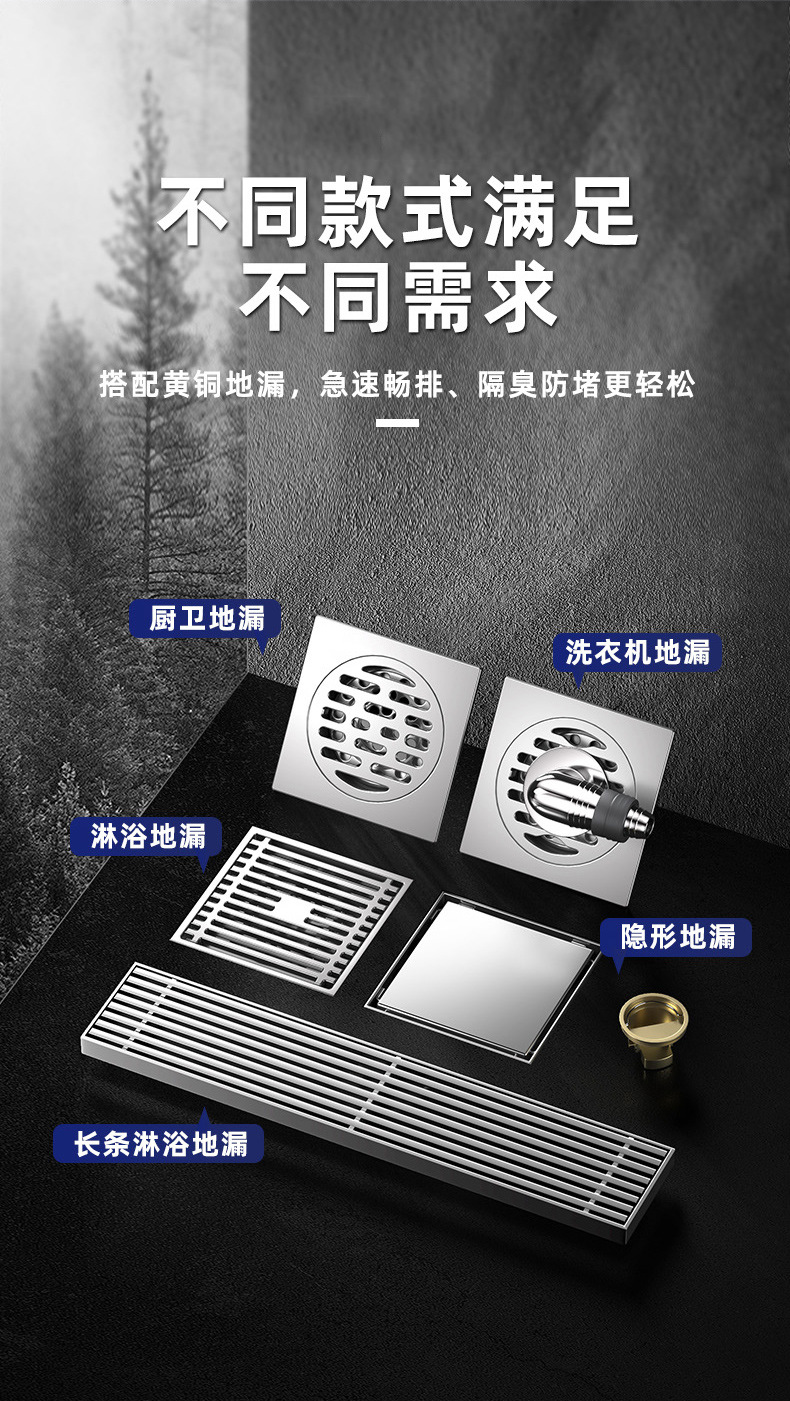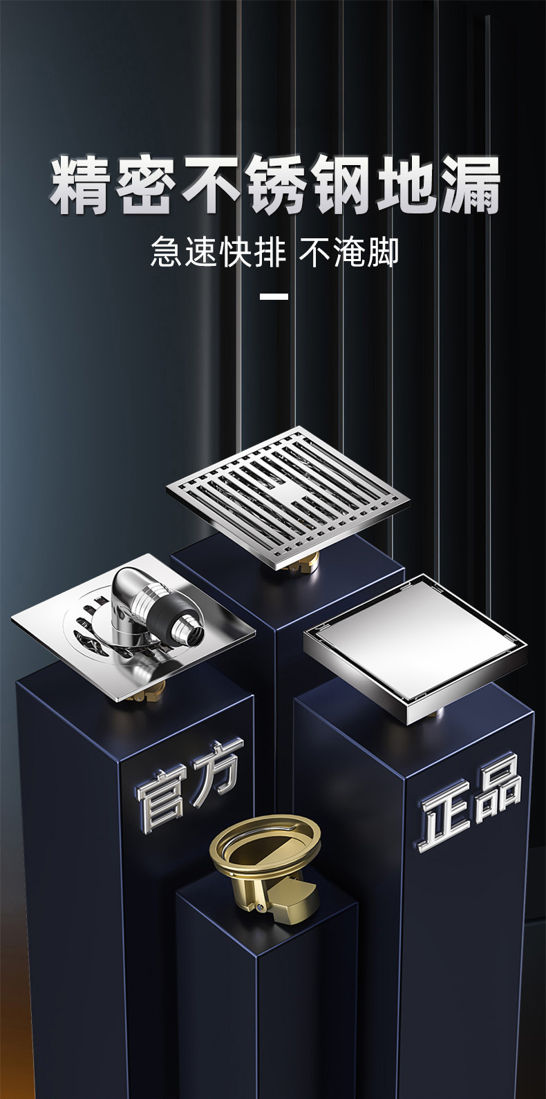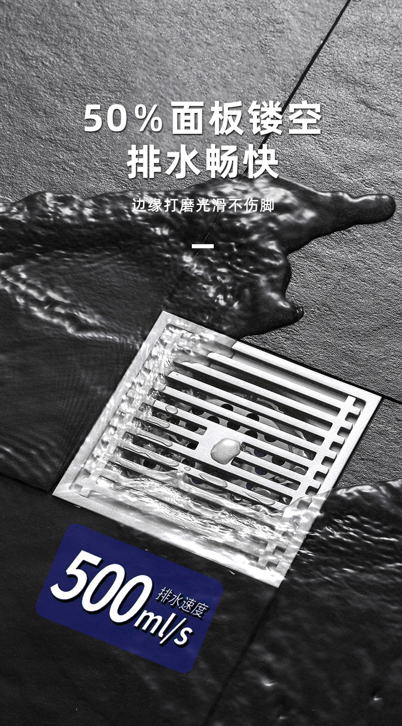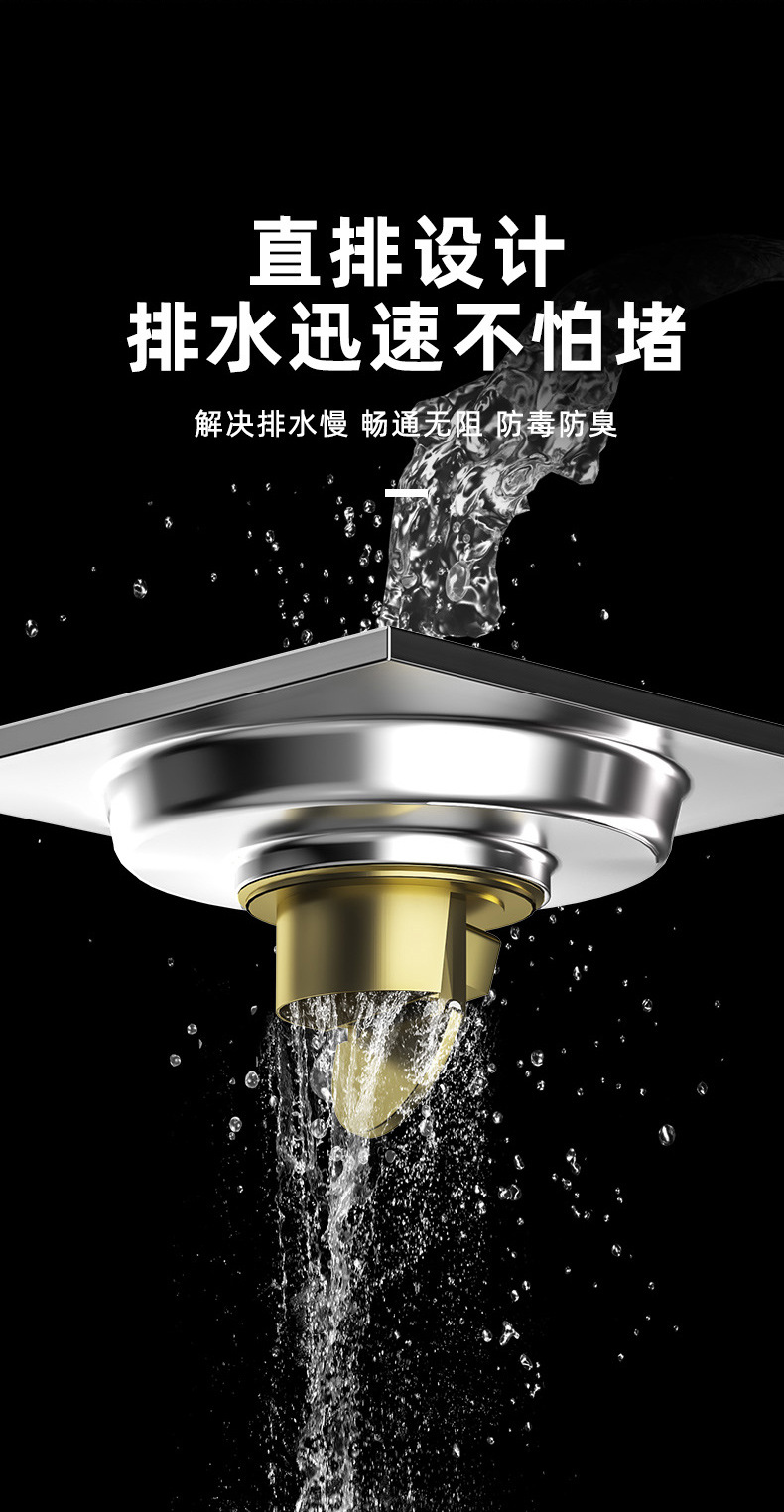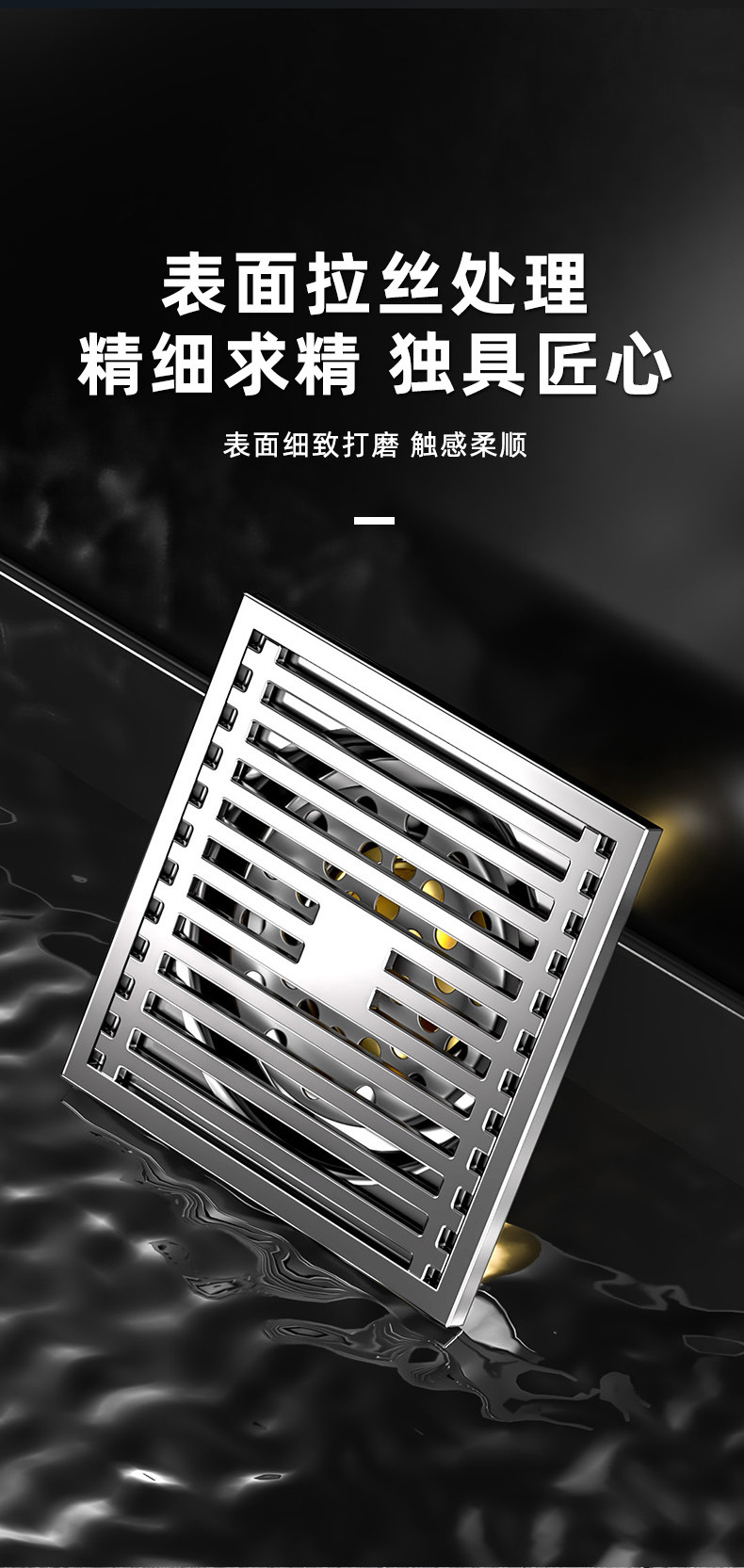 304不锈钢防臭隐形地漏拉丝银全铜地漏芯卫生间淋浴房洗衣机两用