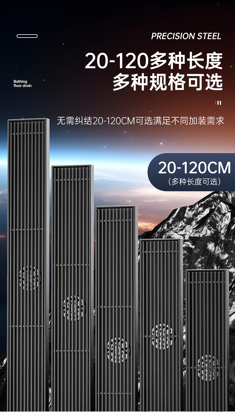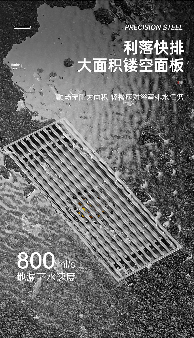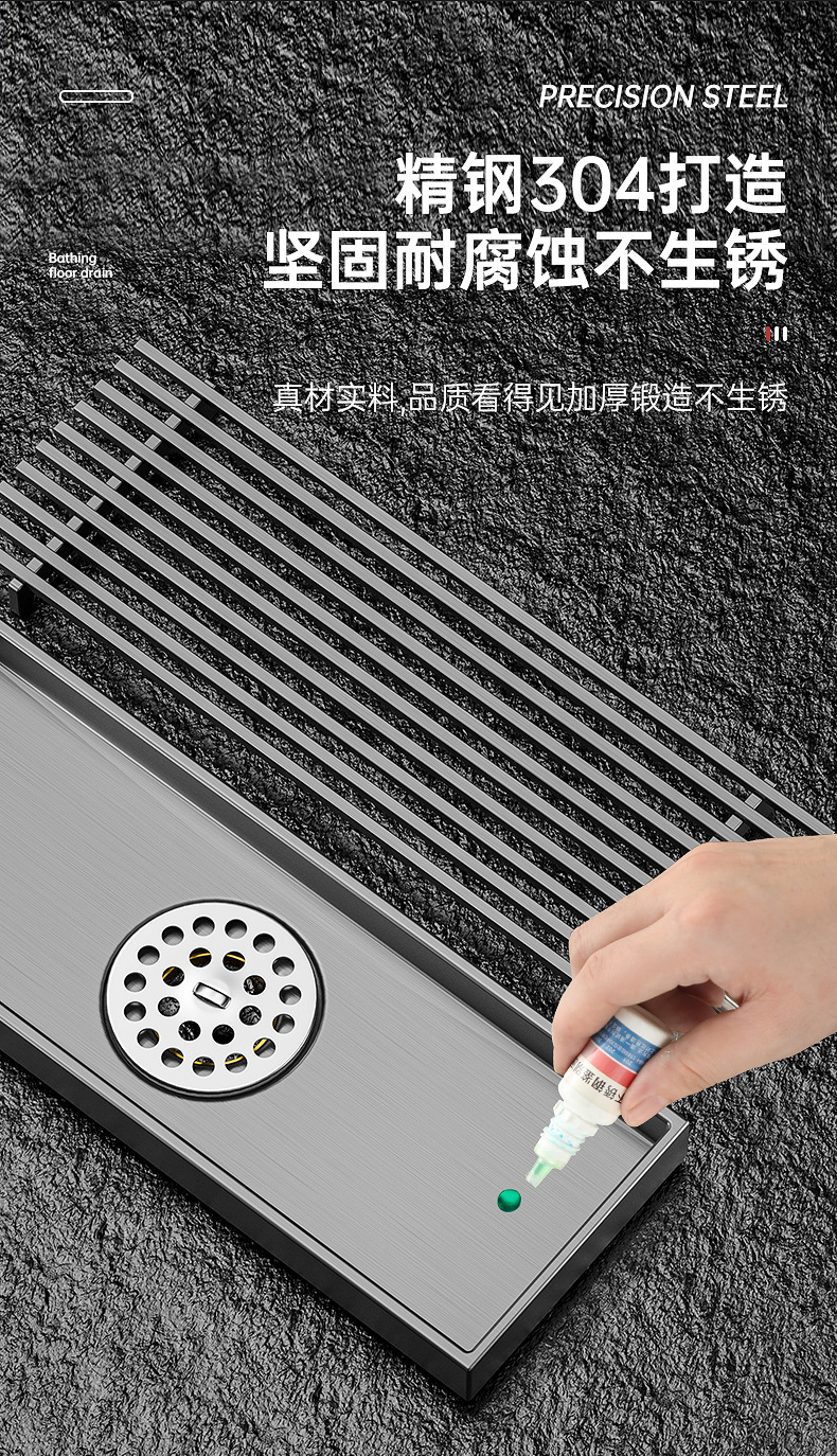 长条形地漏304不锈钢加宽大排量浴室卫生间淋浴房下水道防臭枪灰