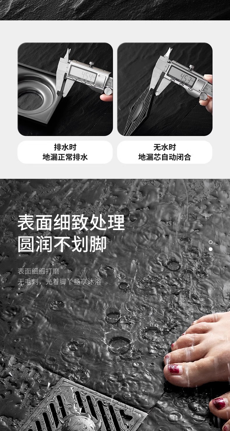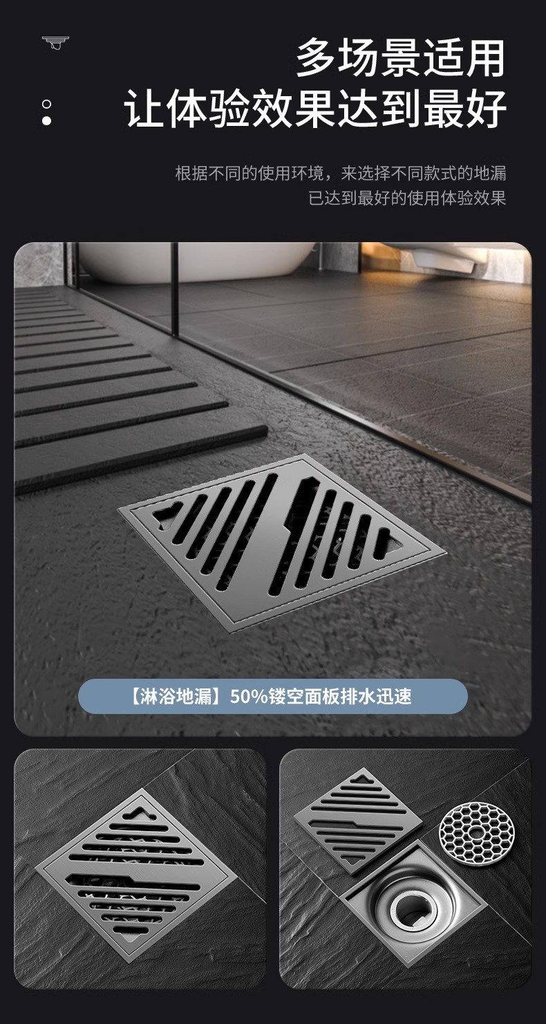 枪灰色地漏加厚防臭器卫生间淋浴房下水道长条隐形浴室洗衣机厕所