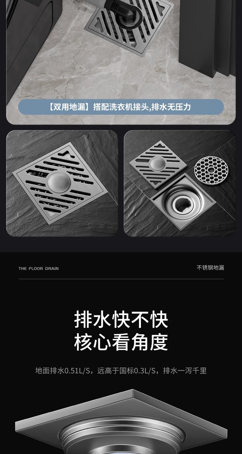 新竹排双用-枪灰防臭地漏
