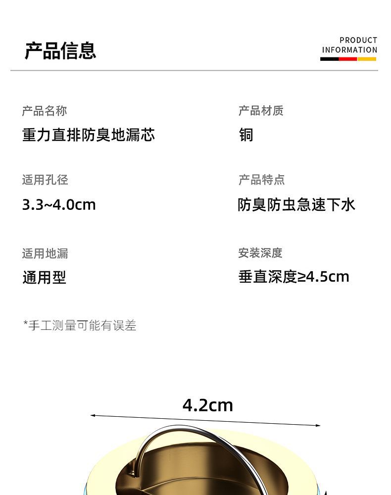 新款防臭【(适用33-40mm地漏)】铜色