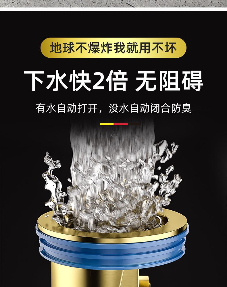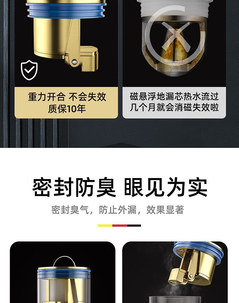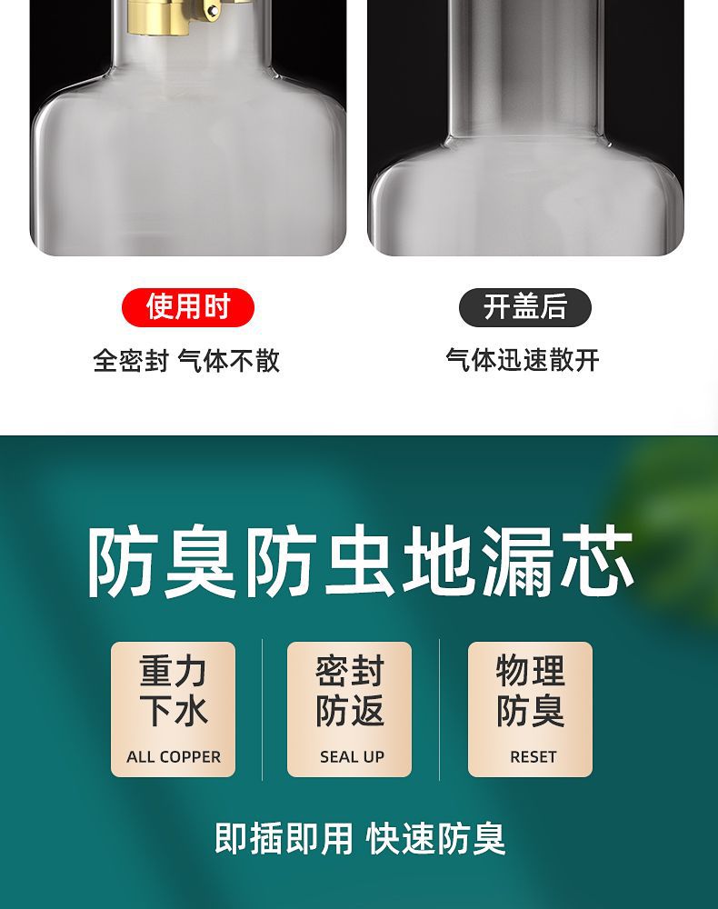 卫生间地漏防臭器下水道防反味神器盖铜色内芯厕所防虫下水管通用