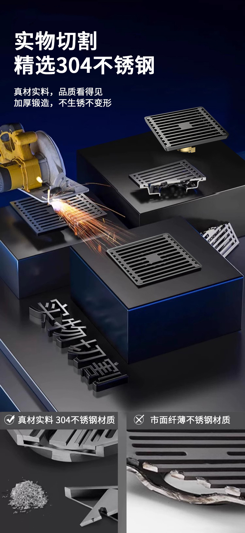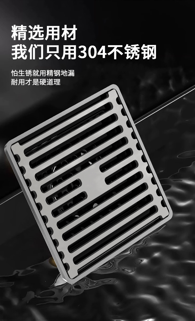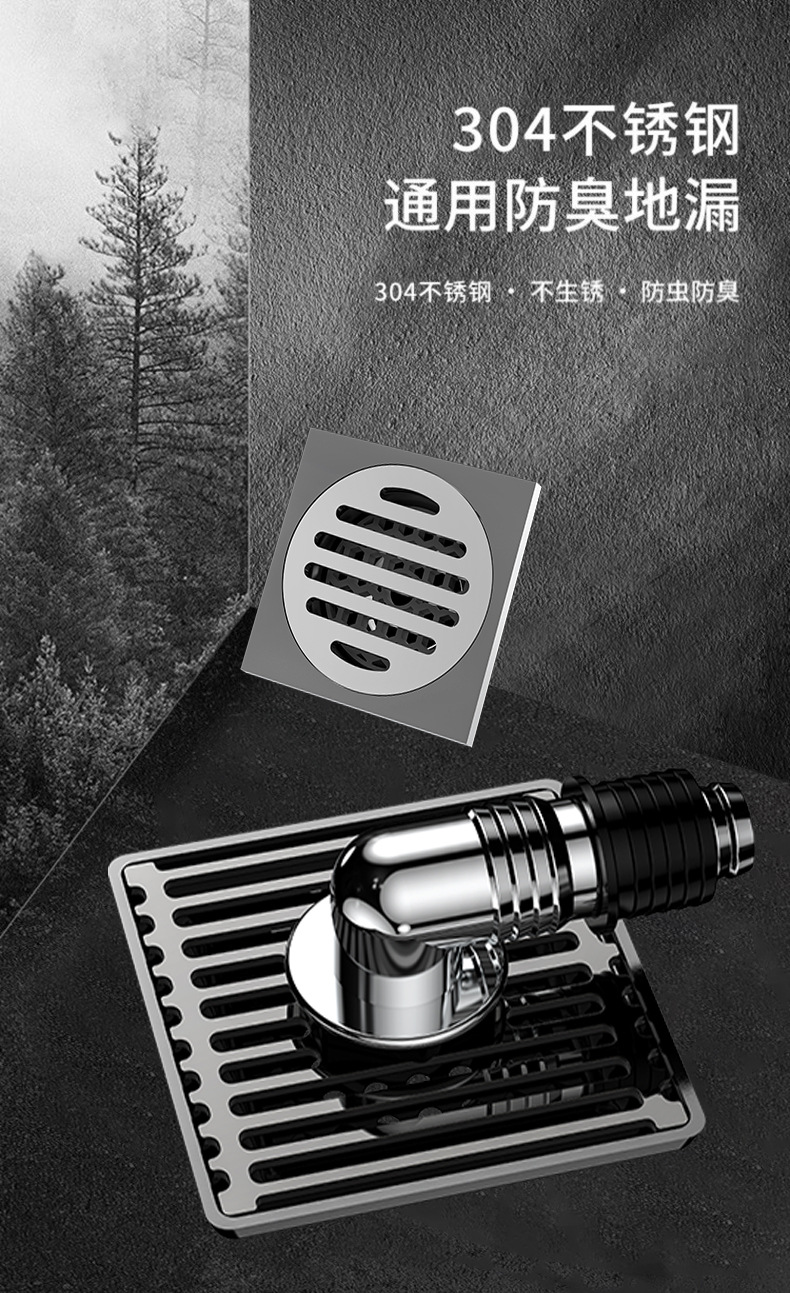 不锈钢防臭地漏方形卫生间浴室淋浴房洗衣机下水道防虫臭枪灰地漏