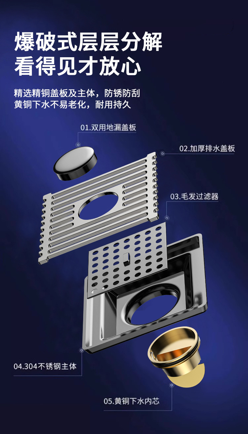 - 淋浴/洗衣机-双用地漏【全铜直排漏芯】