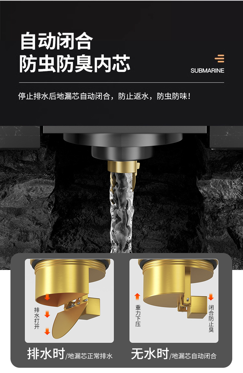 全铜地漏防虫防臭卫生间通用地漏防反水全铜地漏下水道防返臭神器