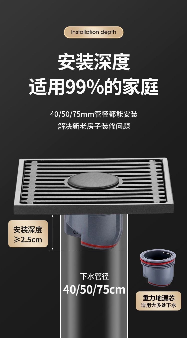 加厚平底无兜不锈钢地漏方形厨房卫生间排水管防虫防臭淋浴房加宽