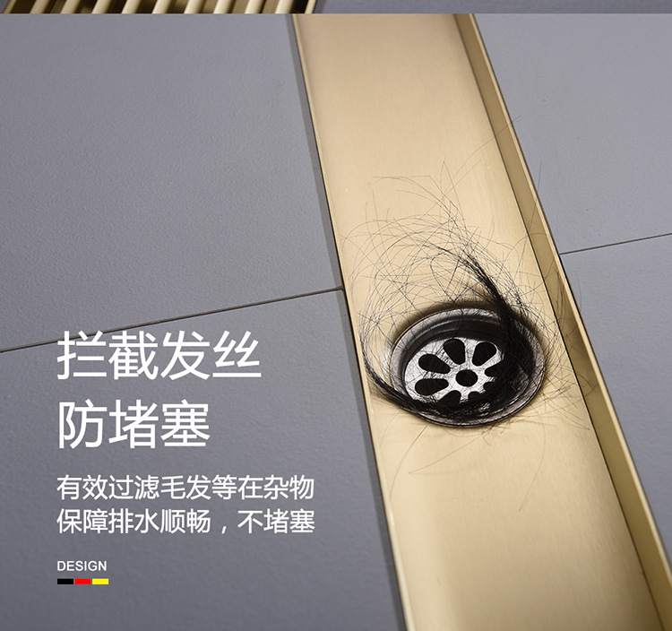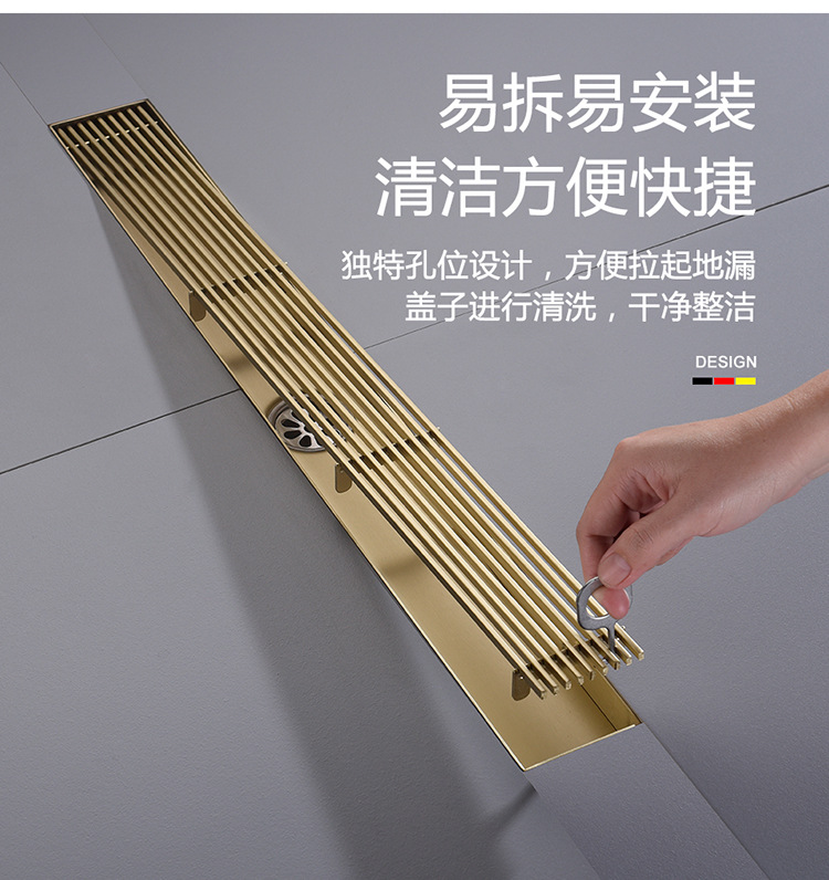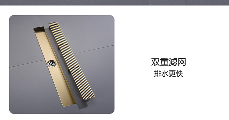 304不锈钢长条地漏竹排淋浴房防臭卫生间长方形金色侧排