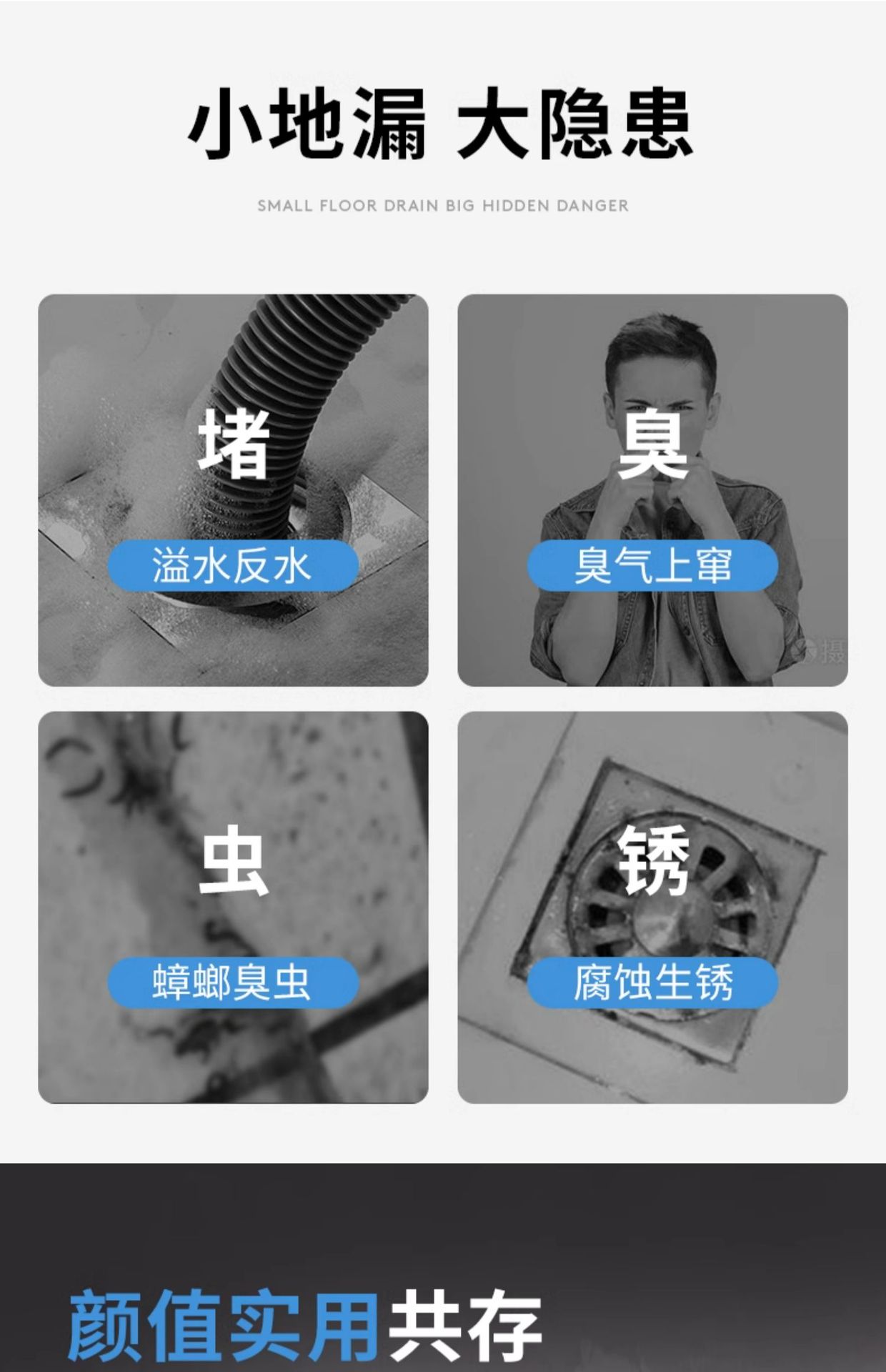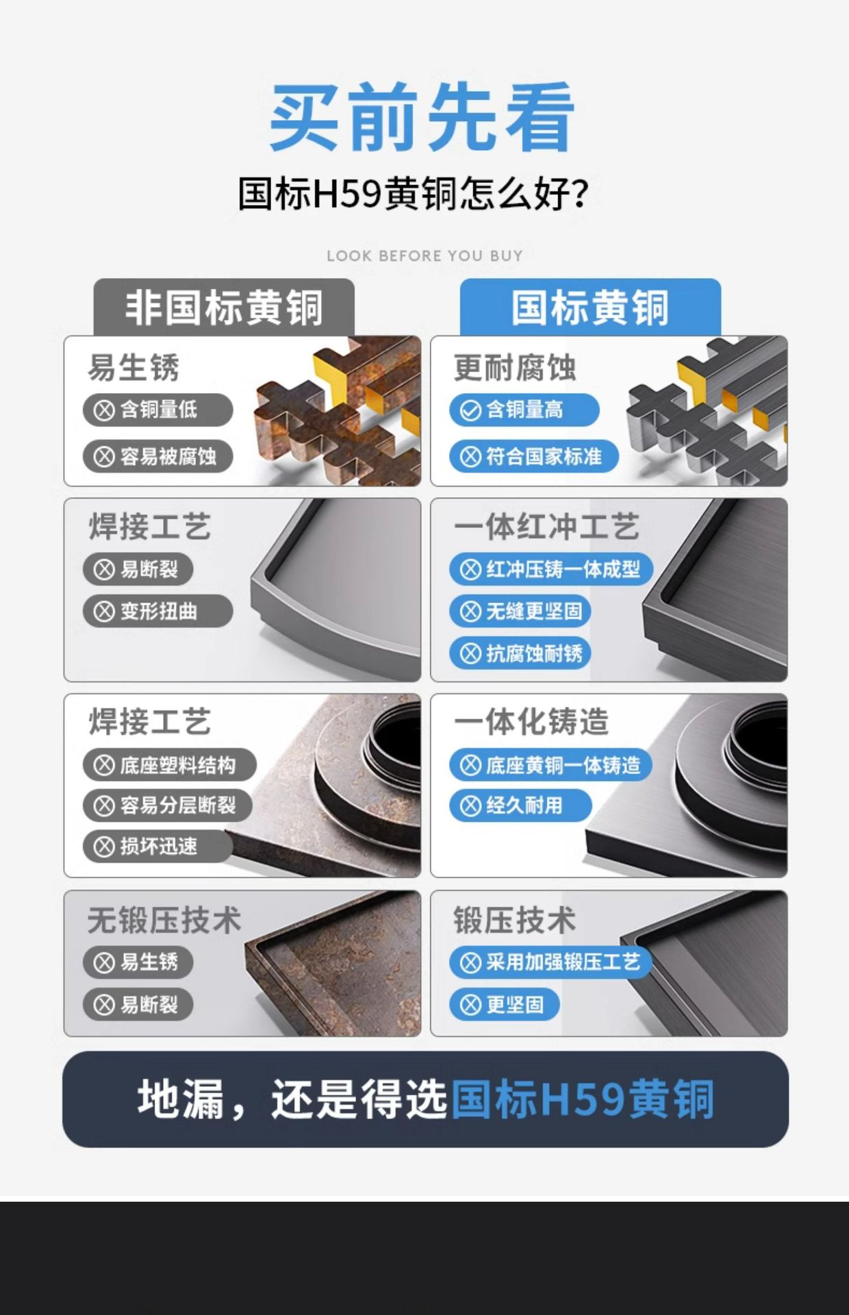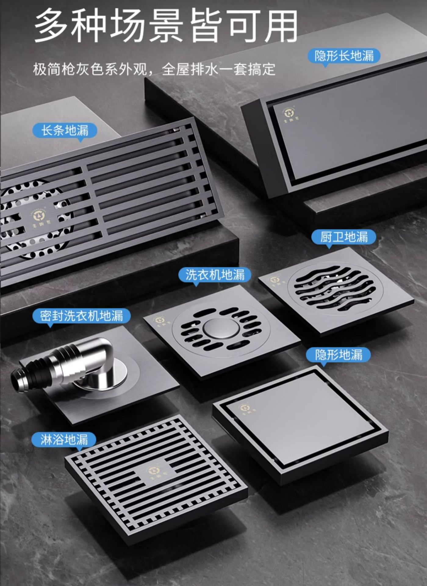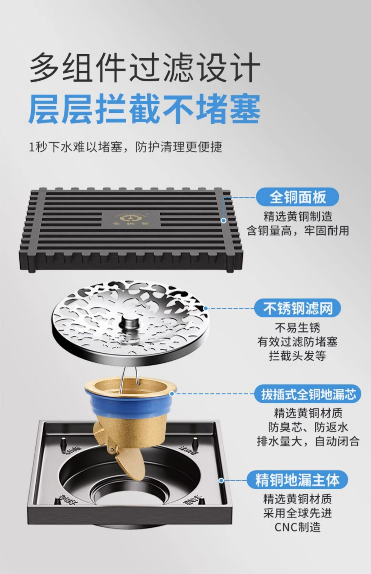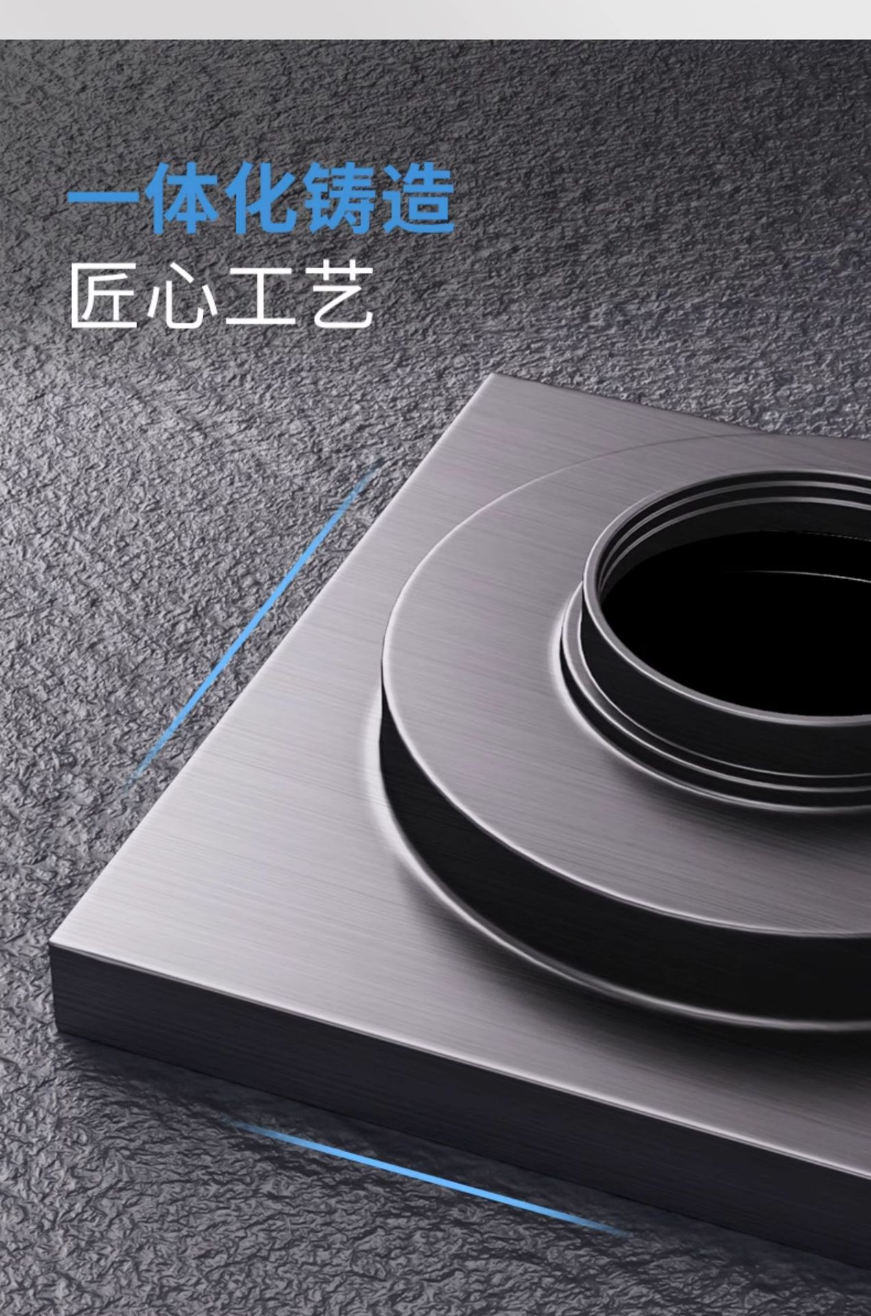 老铜匠全铜地漏枪灰色纯铜防臭地漏隐形卫生间洗衣机淋浴地漏防臭