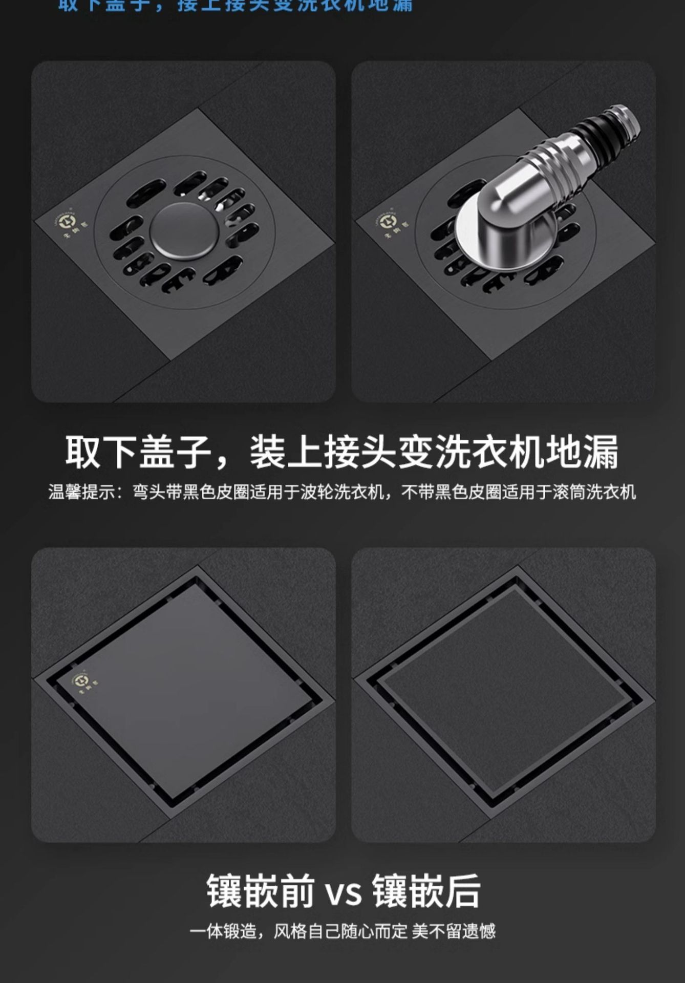 - 洗衣机地漏(送弯头)全铜防臭芯