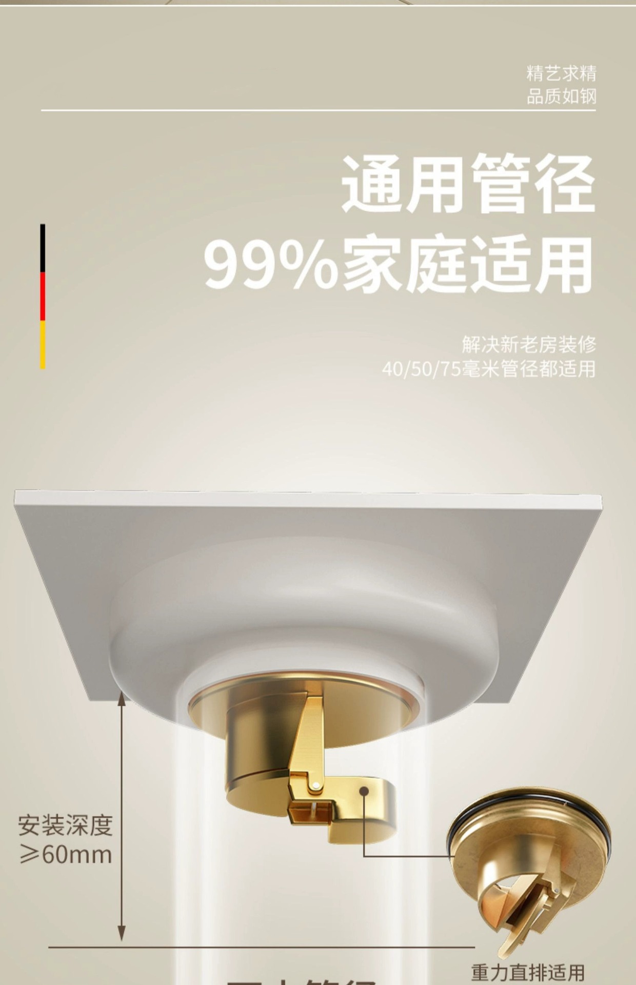奶油风【升级铜芯/B款】厨卫洗衣机地漏