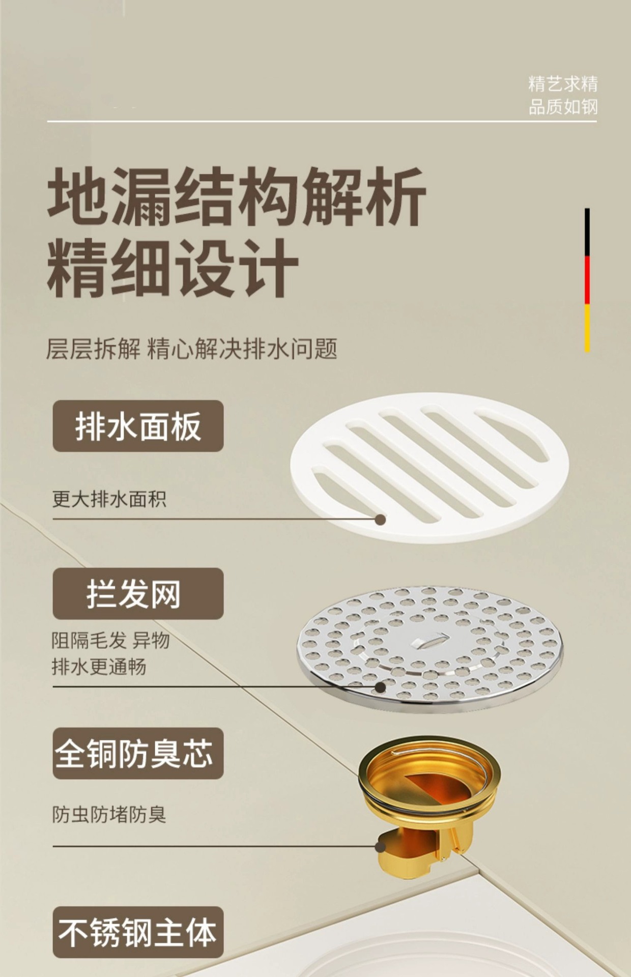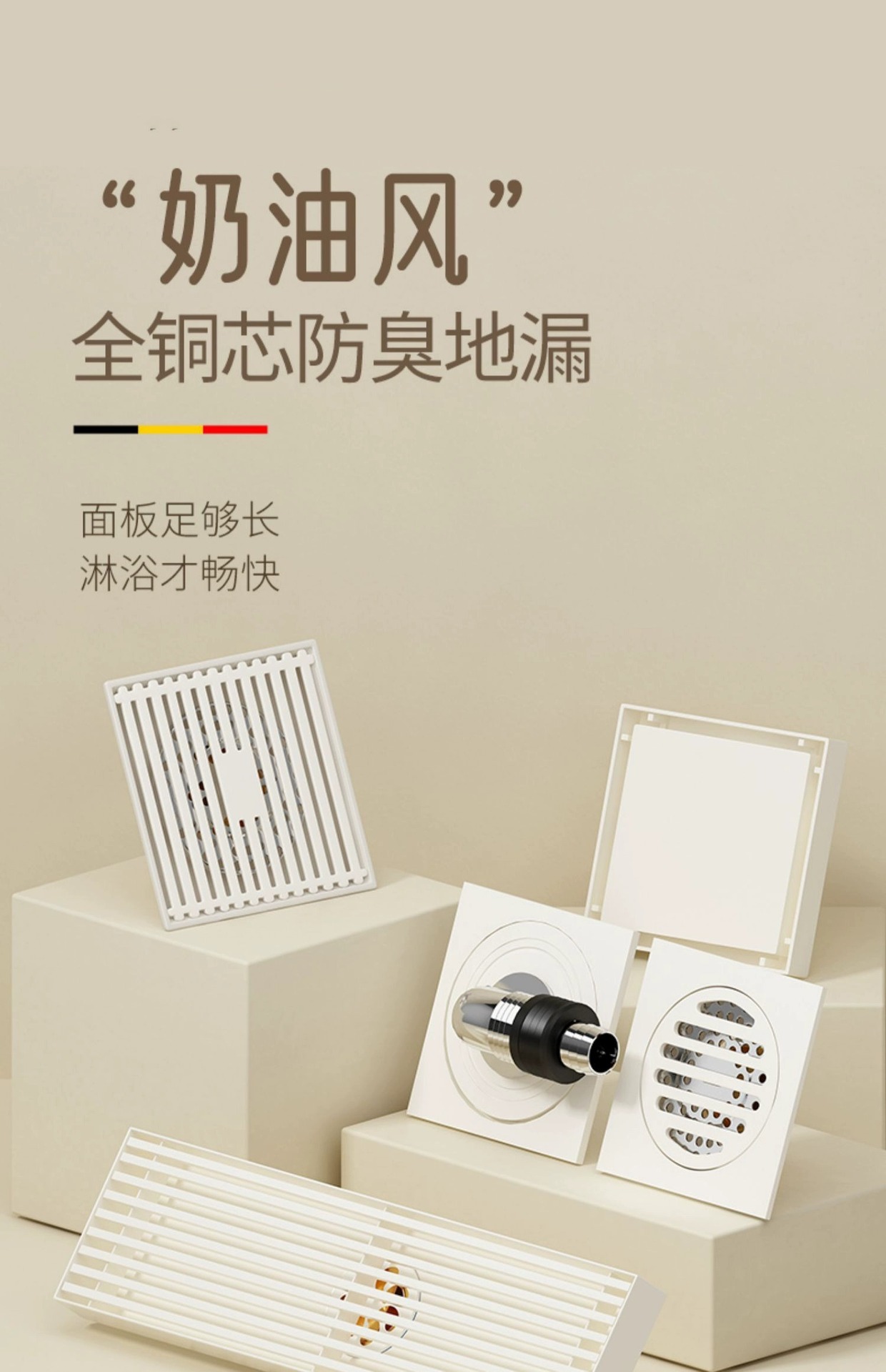 奶油风地漏防臭全铜芯卫生间洗衣机阳台地漏淋浴室隐形通用