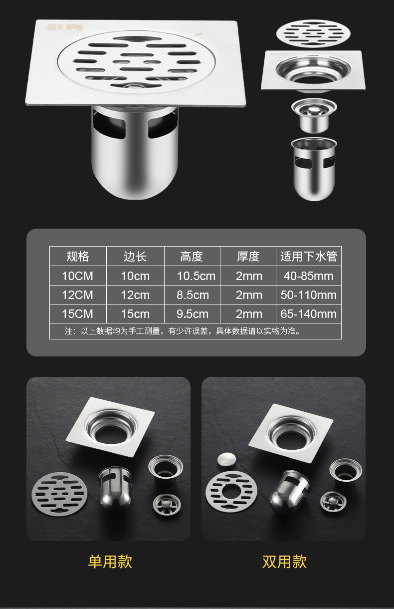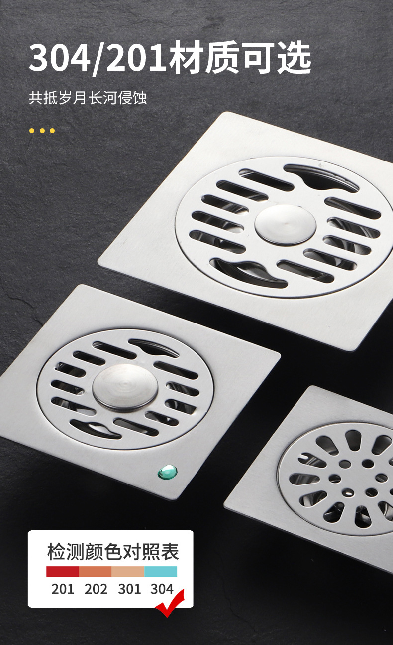 304不锈钢地漏防臭浴室洗衣机水地漏深拉丝地漏