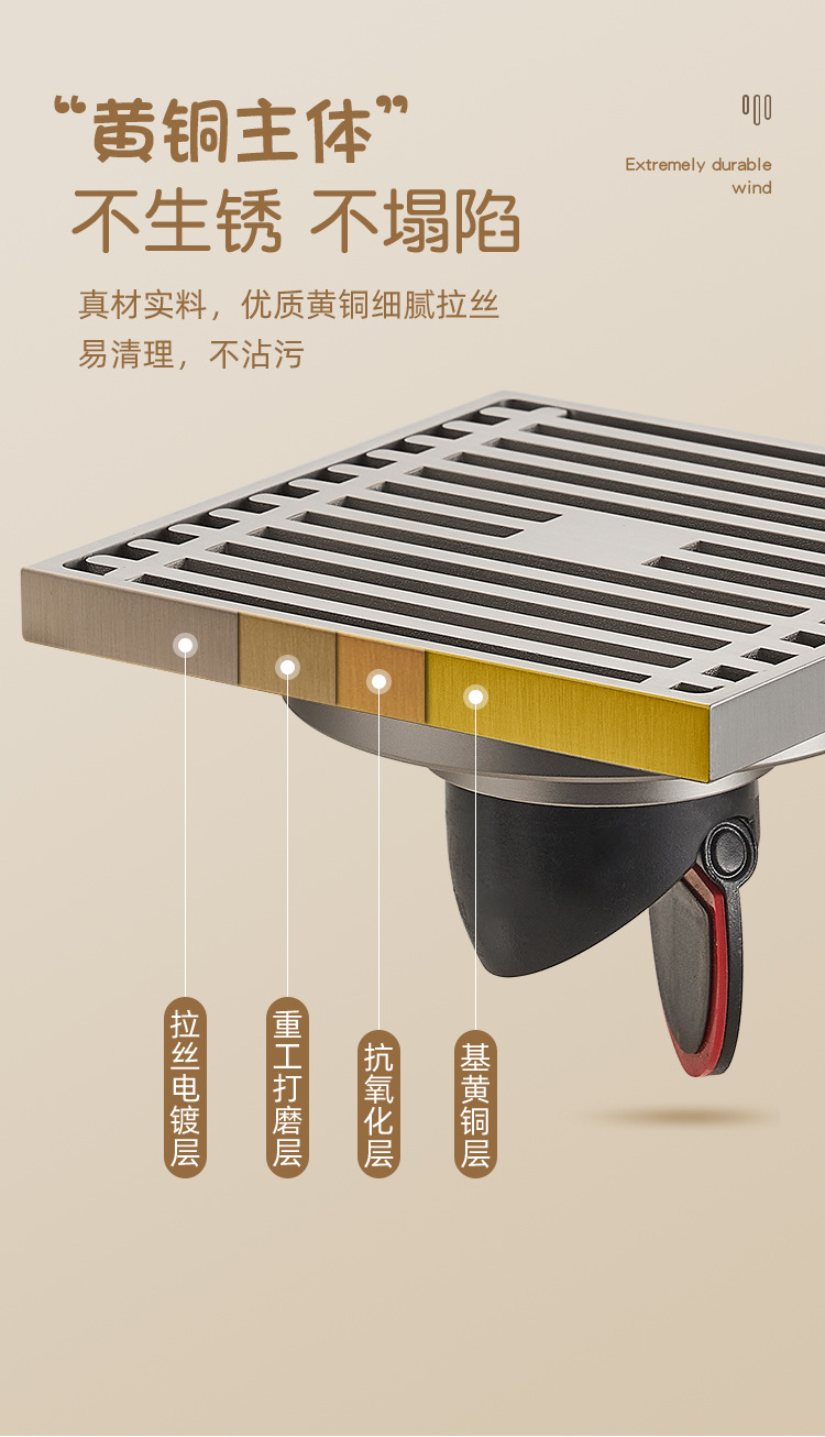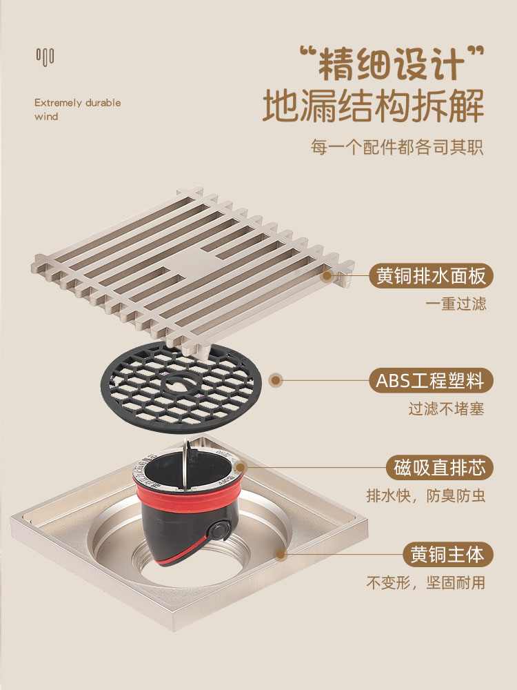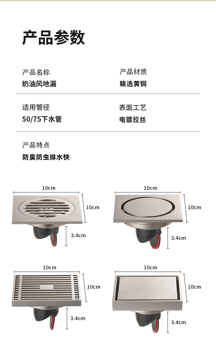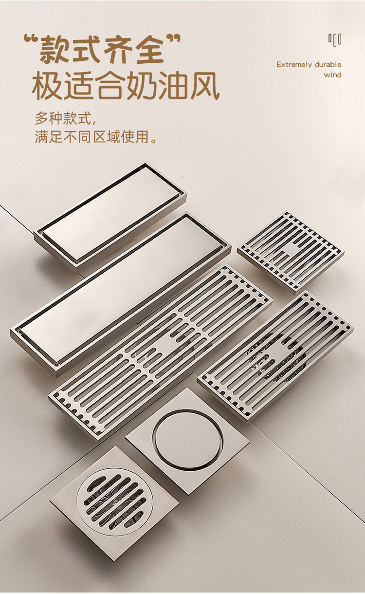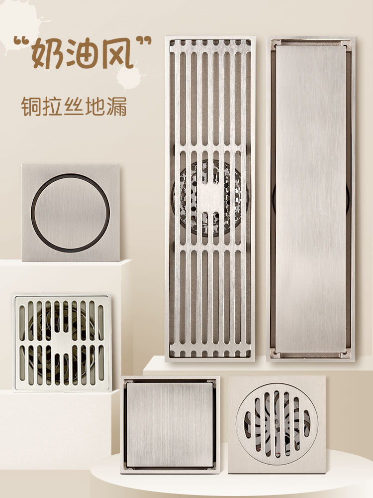 奶油风地漏全铜防臭卫生间长条淋浴镶嵌洗衣地漏盖防虫器