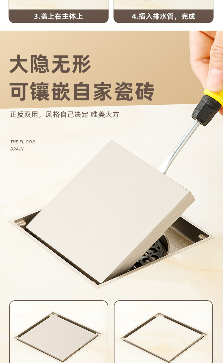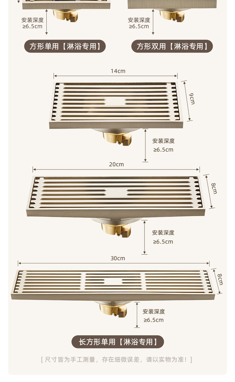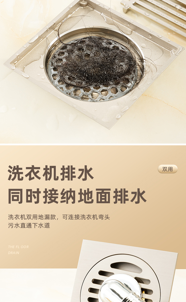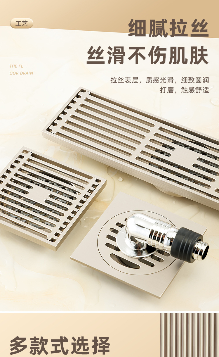 奶油风铜拉丝防虫臭地漏家用厨房淋浴室阳台下水道洗衣机大排量