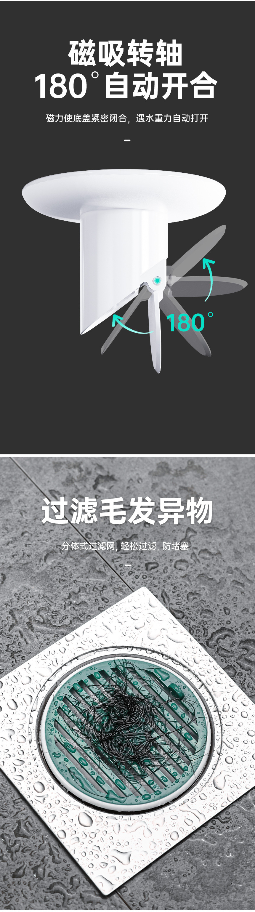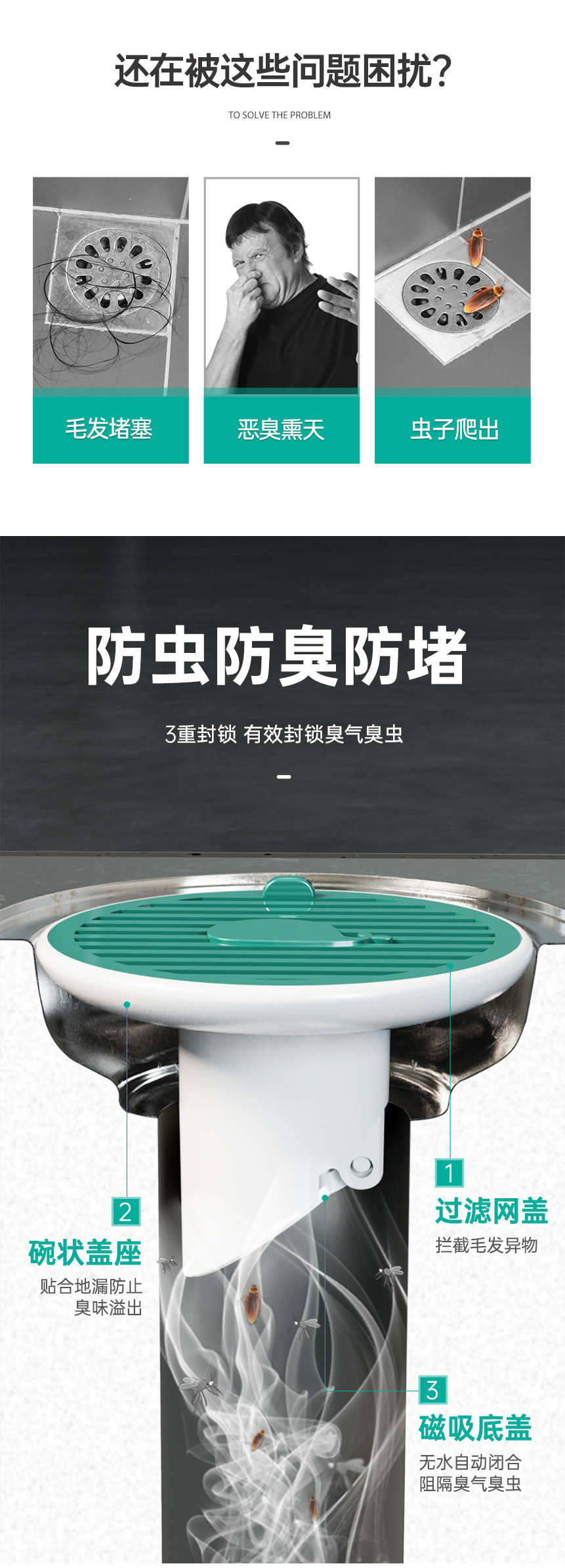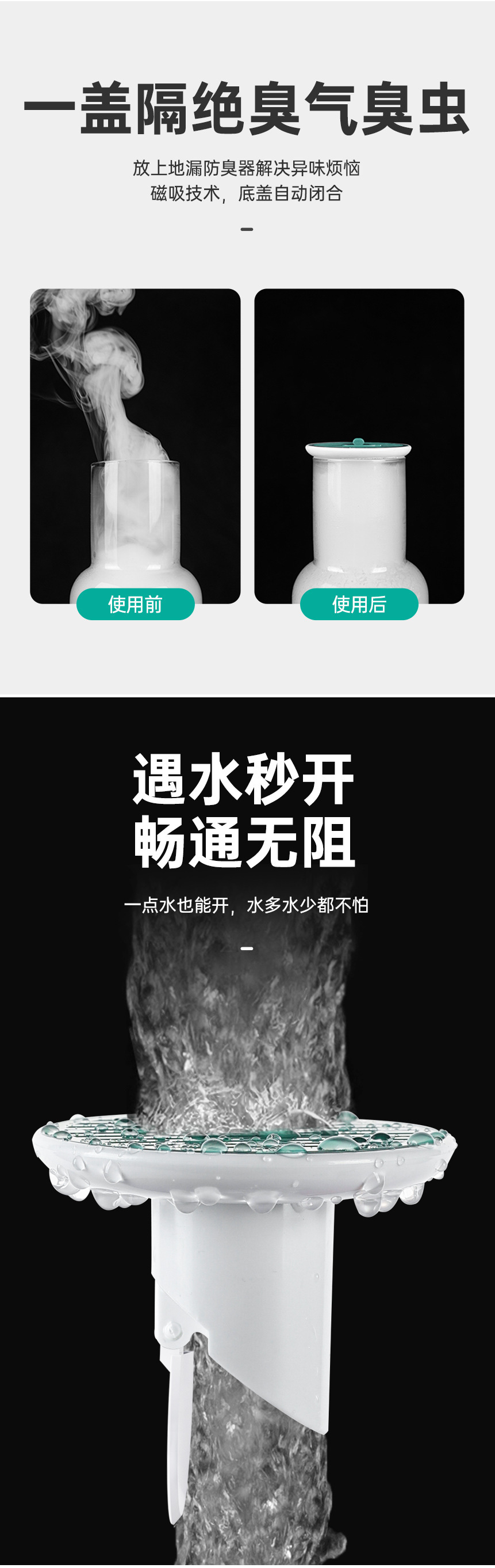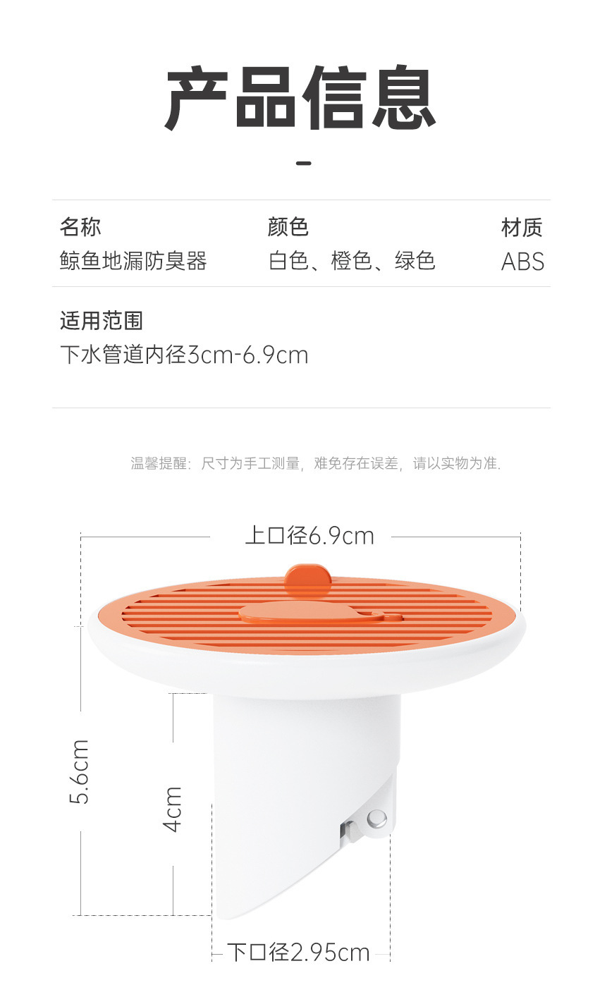 鲸鱼磁吸地漏防臭盖厨房卫生间下水道堵水口密封塞盖芯防反味神器