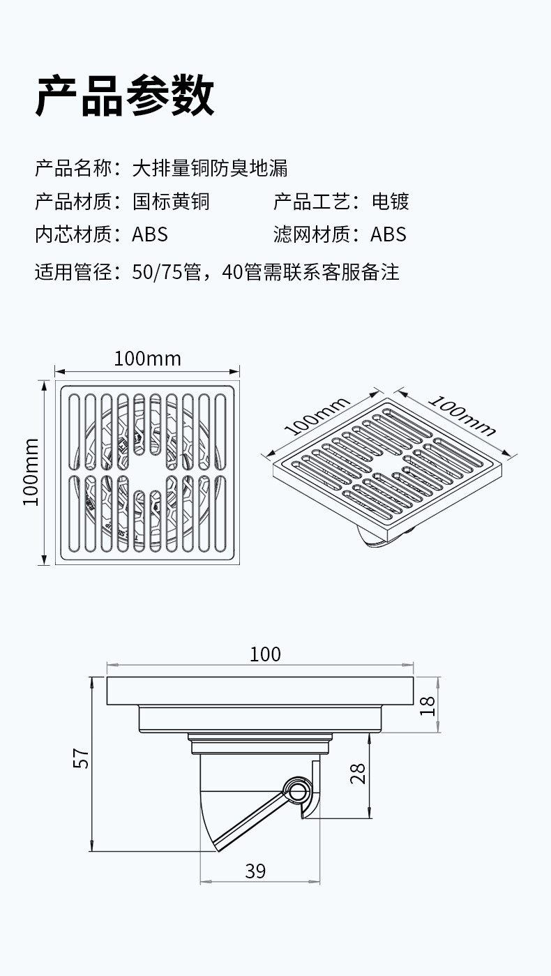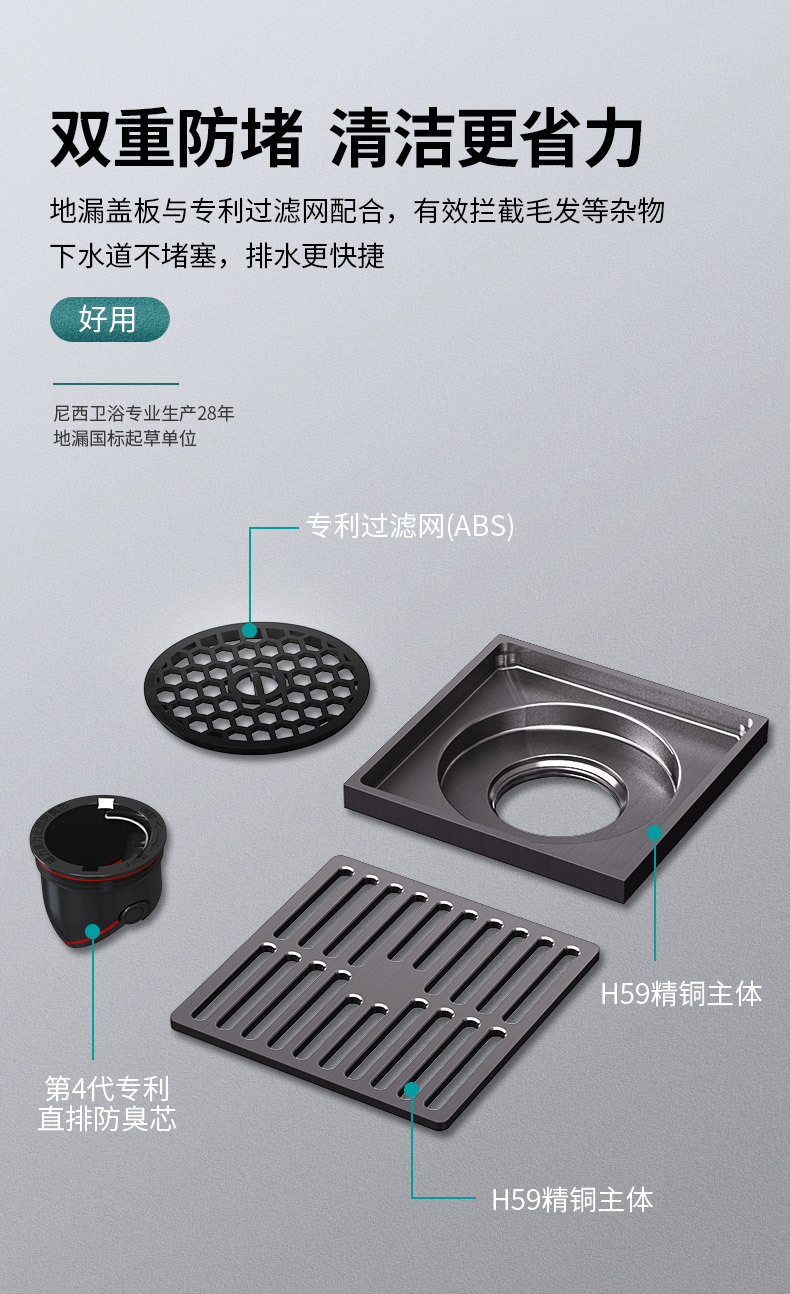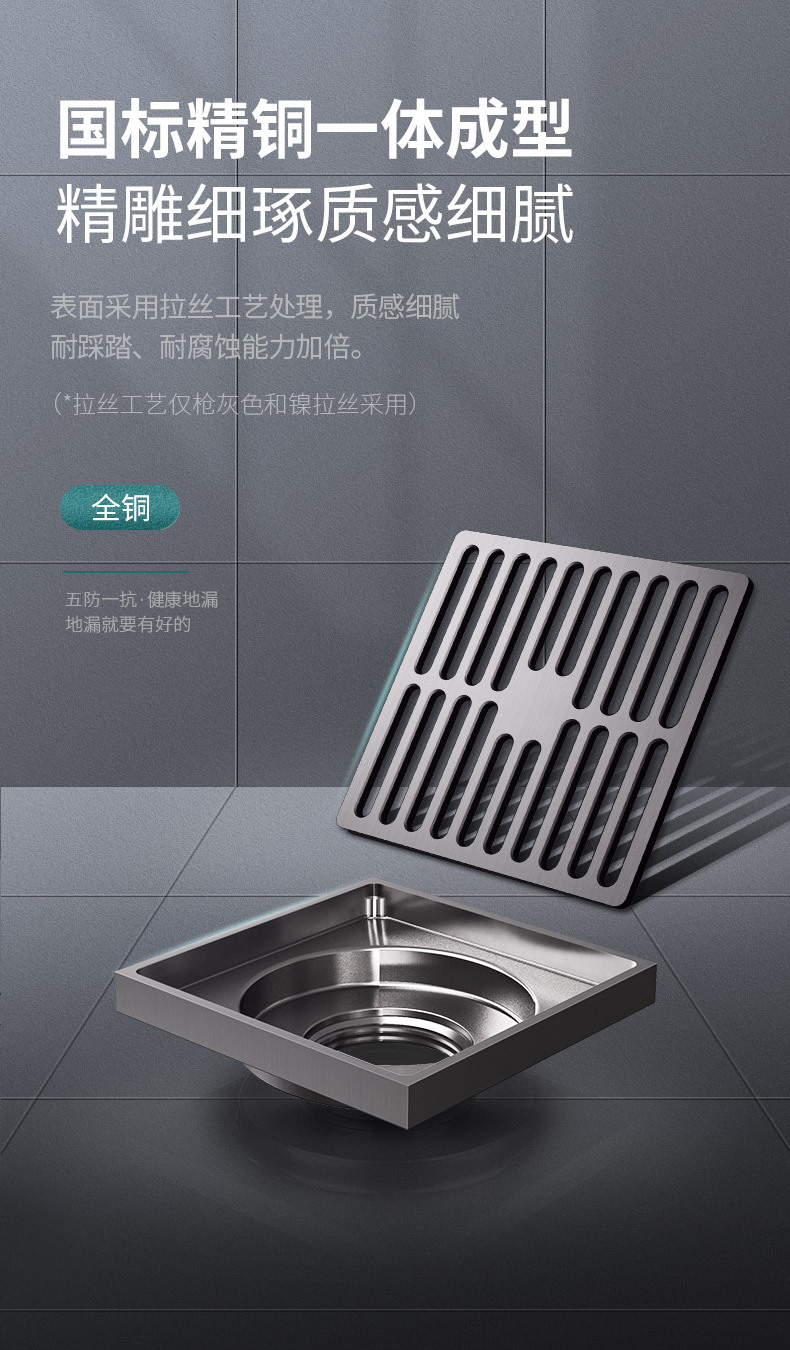大排量全纯铜地漏直排防臭干湿区淋浴厨房卫生间防返水防堵地漏