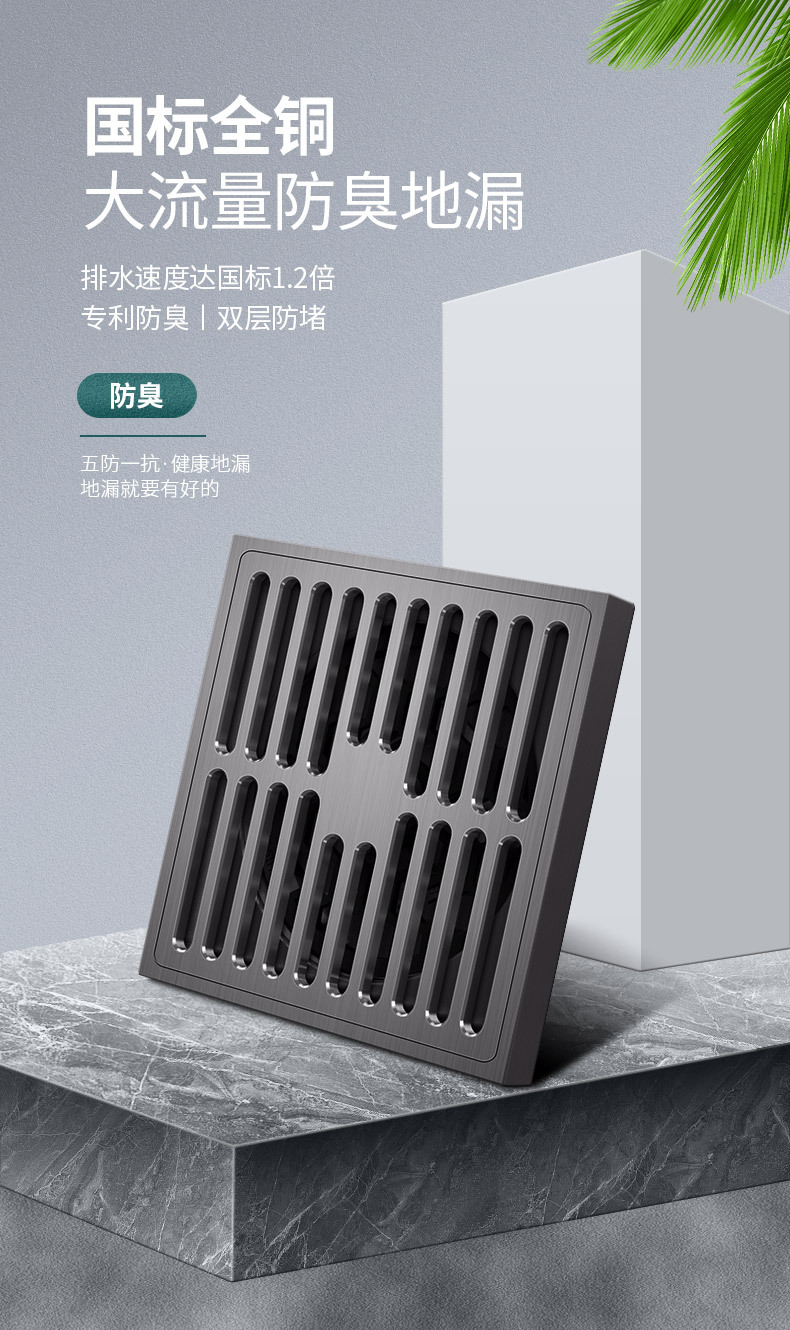 - (淋浴区)精雕格栅(枪灰)50/75管(专利ABS芯)