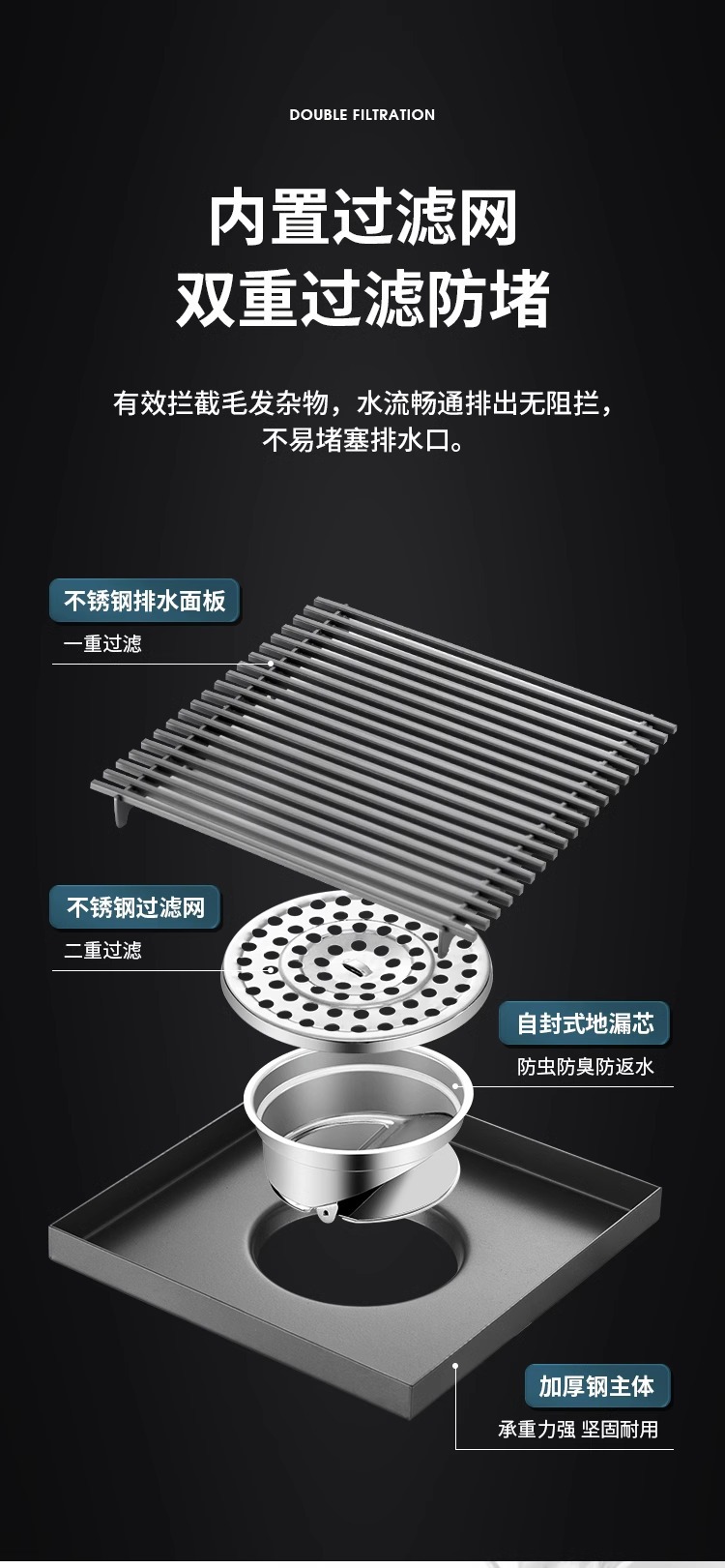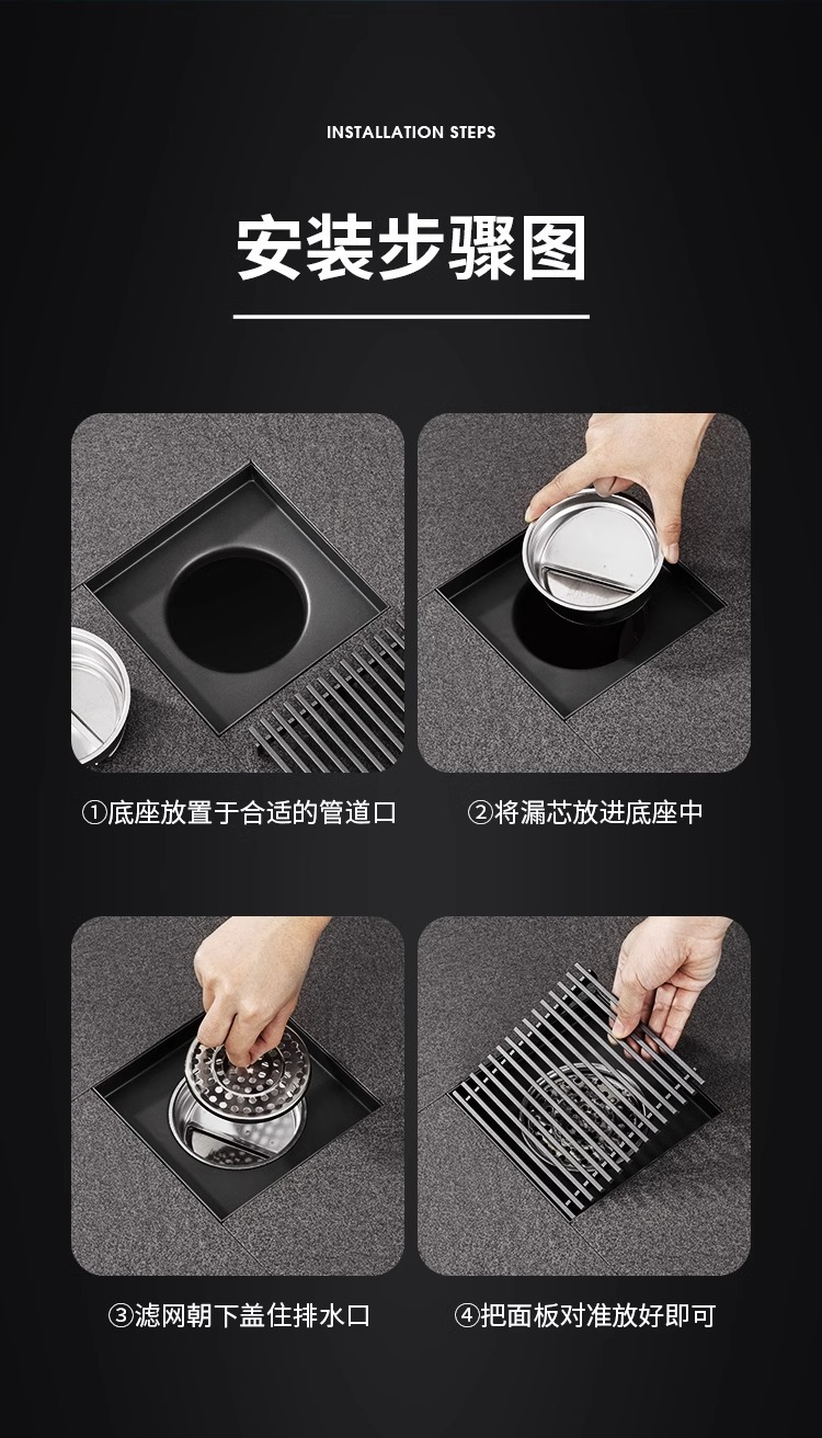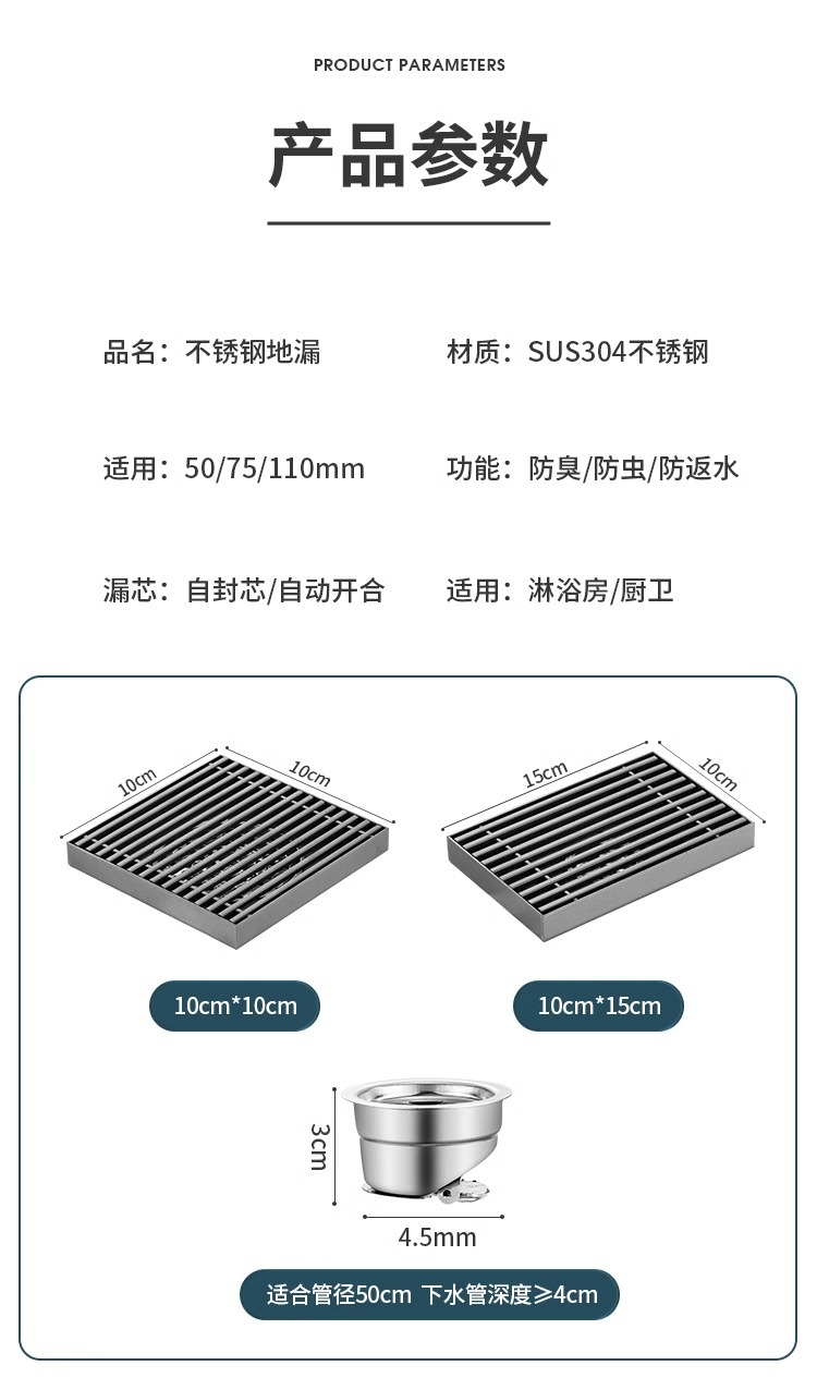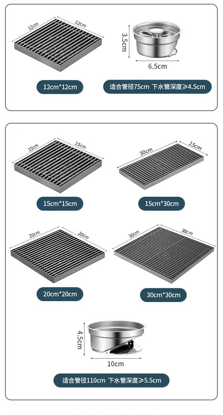 室外加大口径地漏不锈钢304户外庭院下水道110管 160管大排量防臭