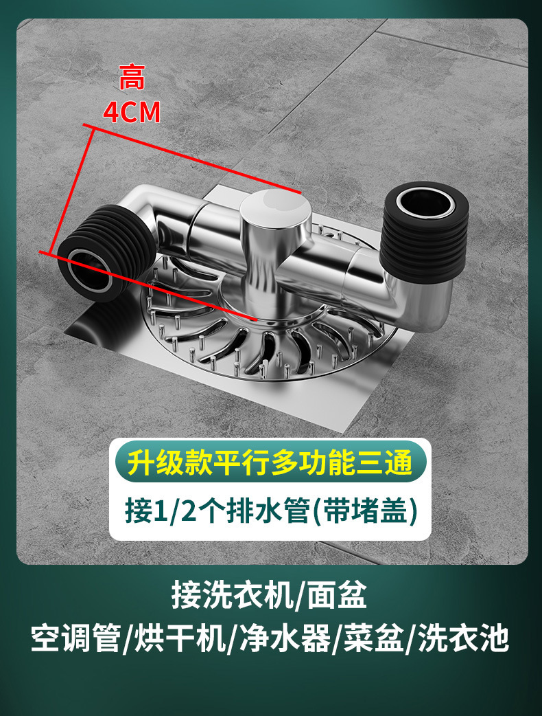 下水管洗衣机三头通排水管地漏接头防臭溢水三通分流器一分二