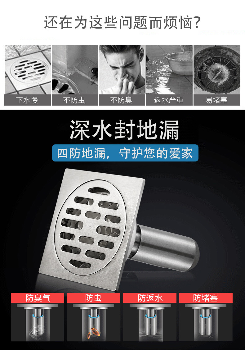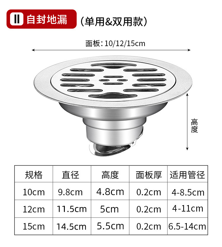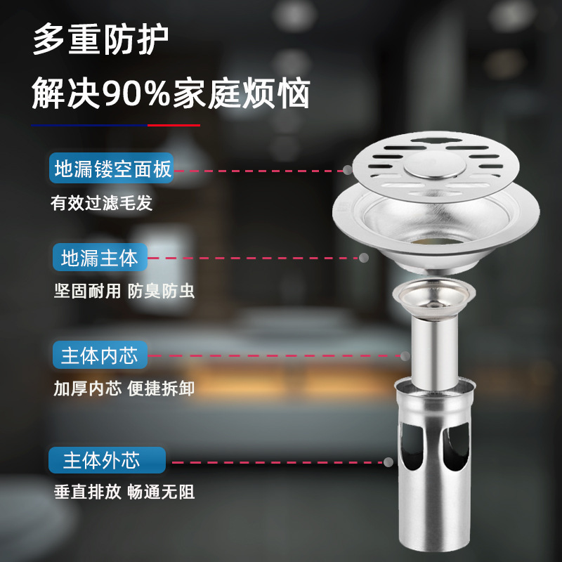 防臭圆形地漏优质不锈钢 阳台洗衣机厕所地漏 双通三通卫生间地漏