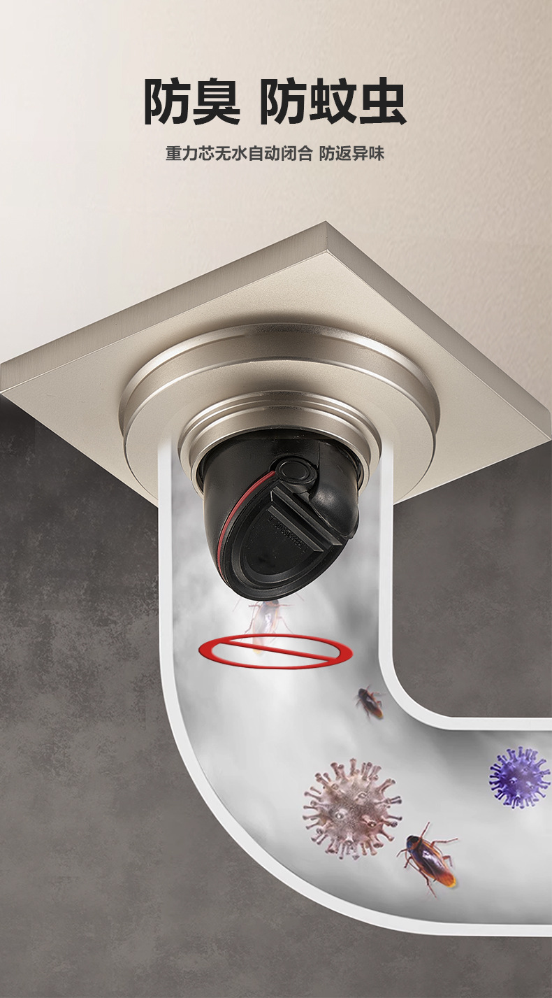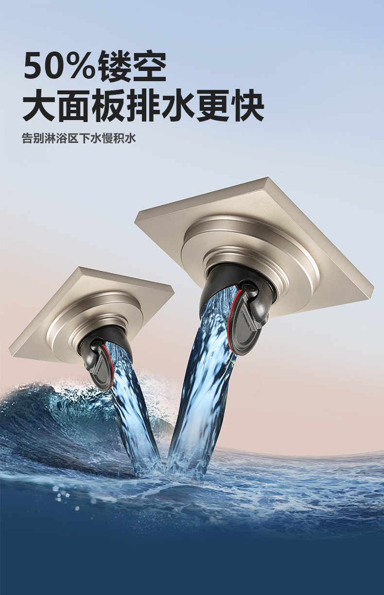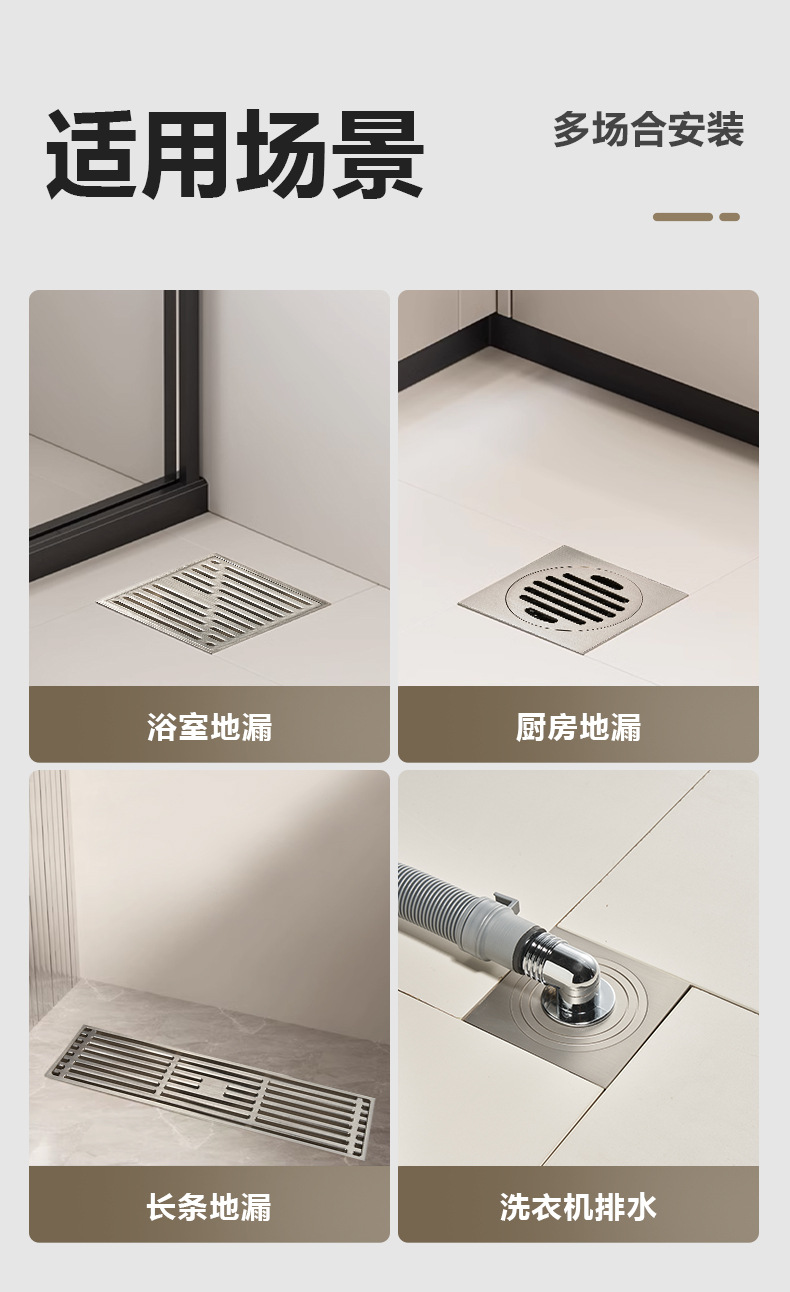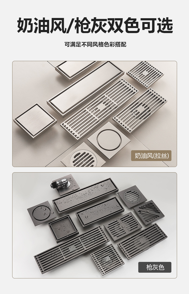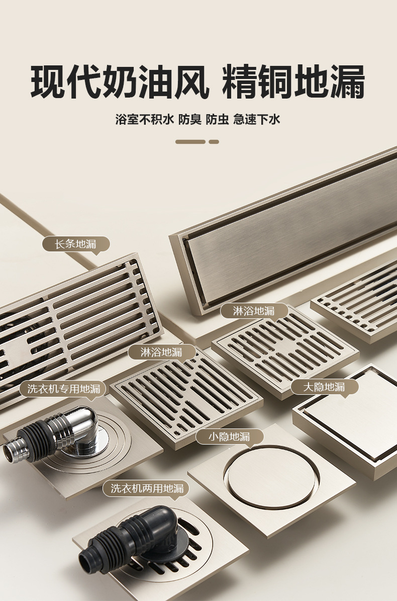 卫生间全铜防臭地漏淋浴房洗衣机防虫防反味奶油色长条隐藏式地漏