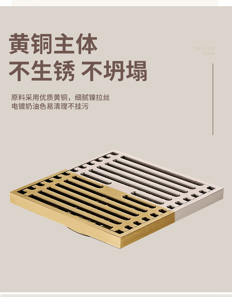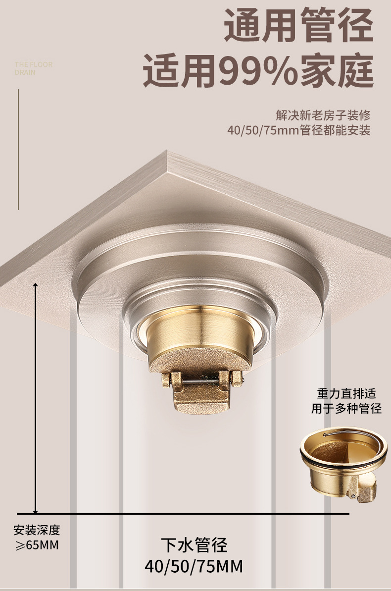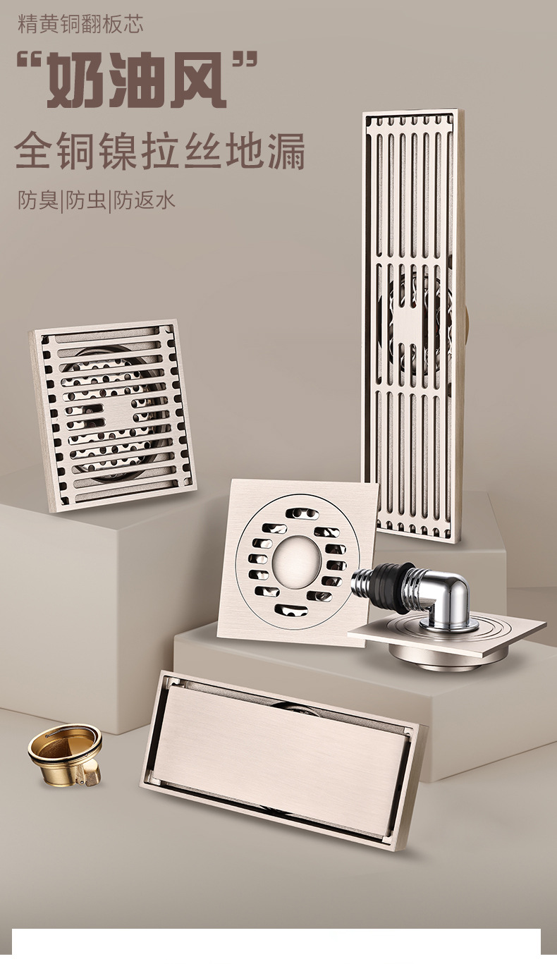 全铜地漏浴室卫生间拉丝防臭地漏全铜重力铜芯地漏卫生间隐形地漏