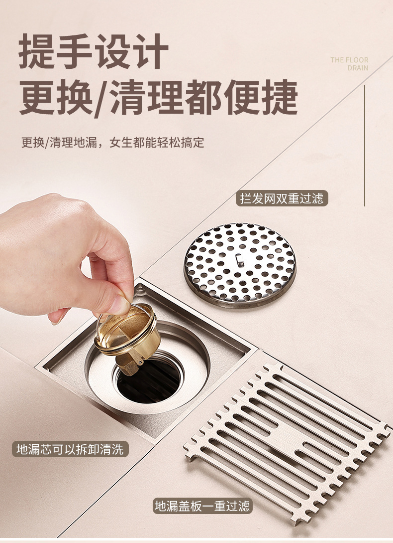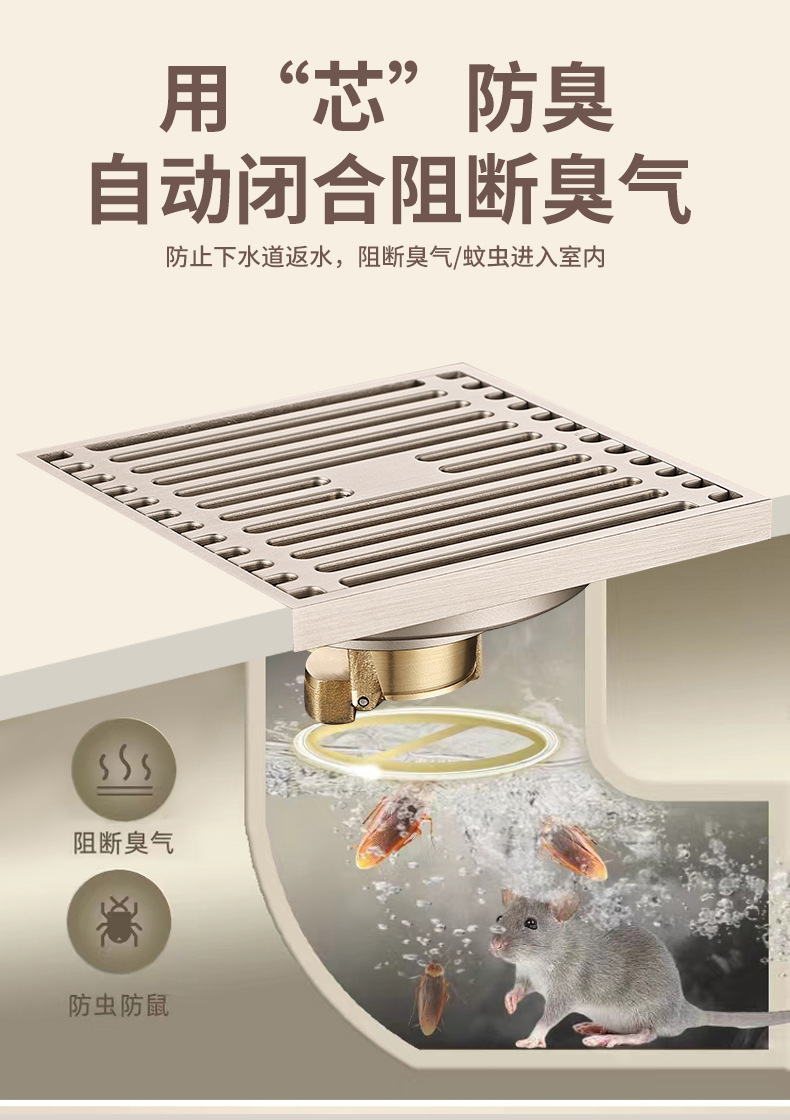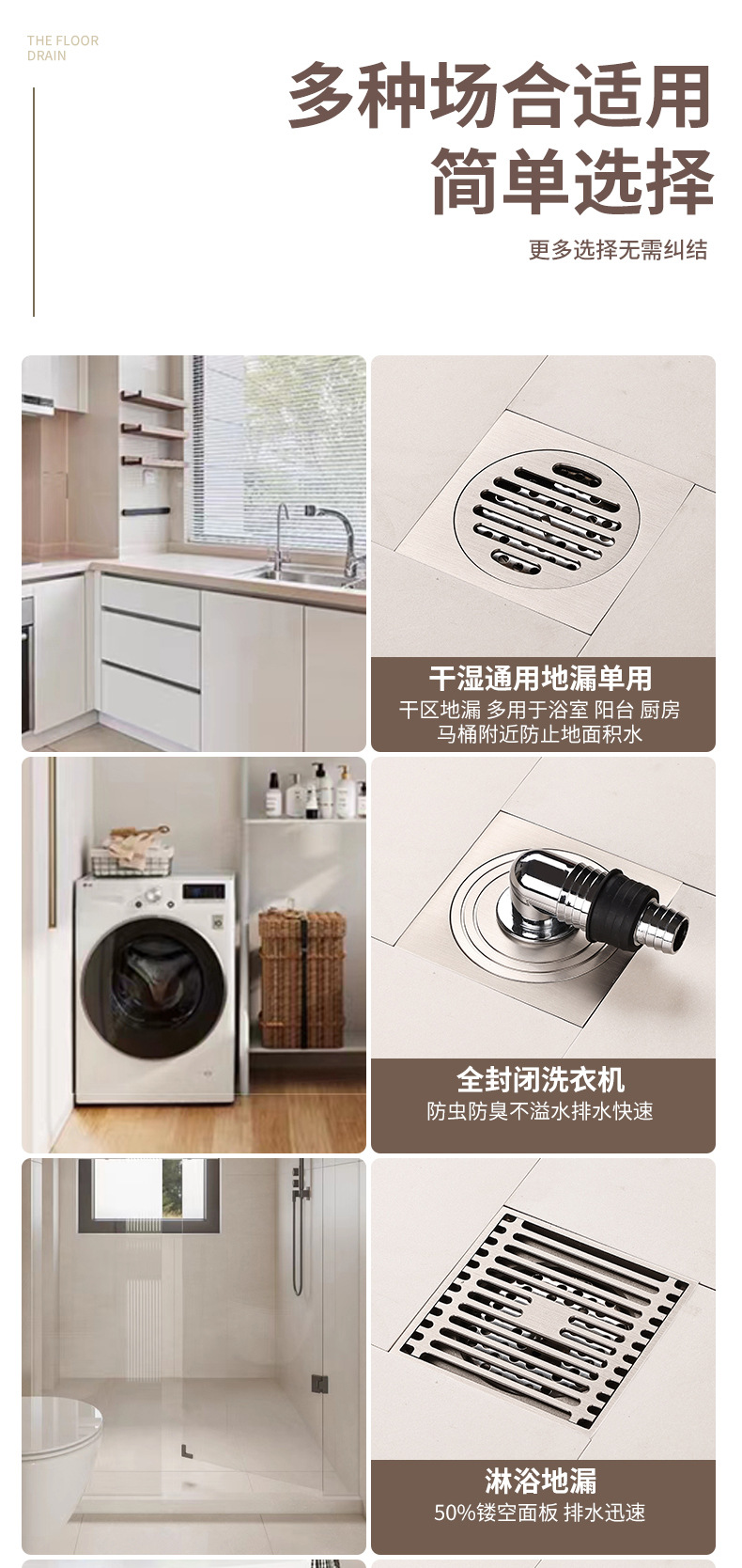 水镀特厚不锈钢地漏防臭防虫卫生间浴室洗衣机下水道方型铜芯地漏