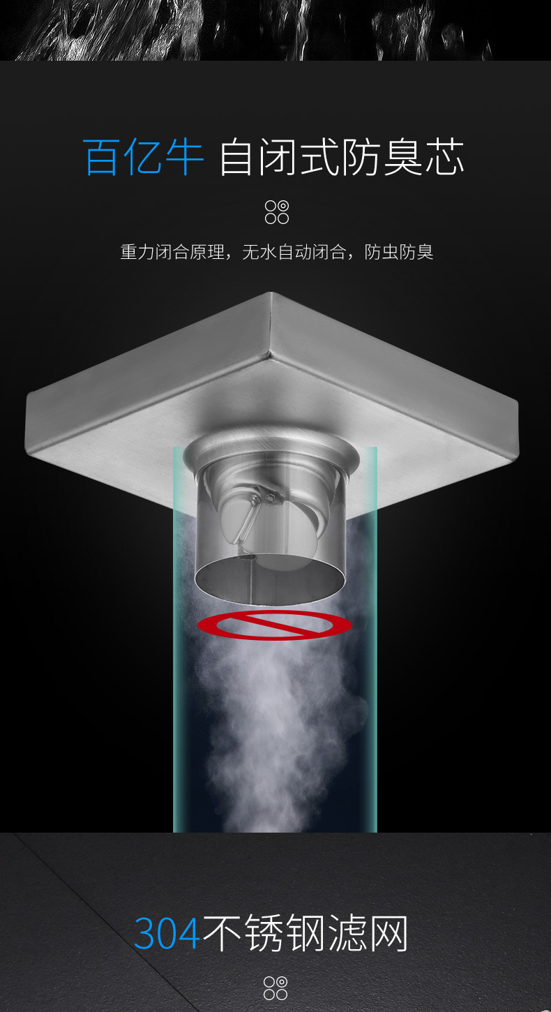 不锈钢防臭地漏方形卫生间浴室淋浴房洗衣机下水道防虫臭枪灰地漏